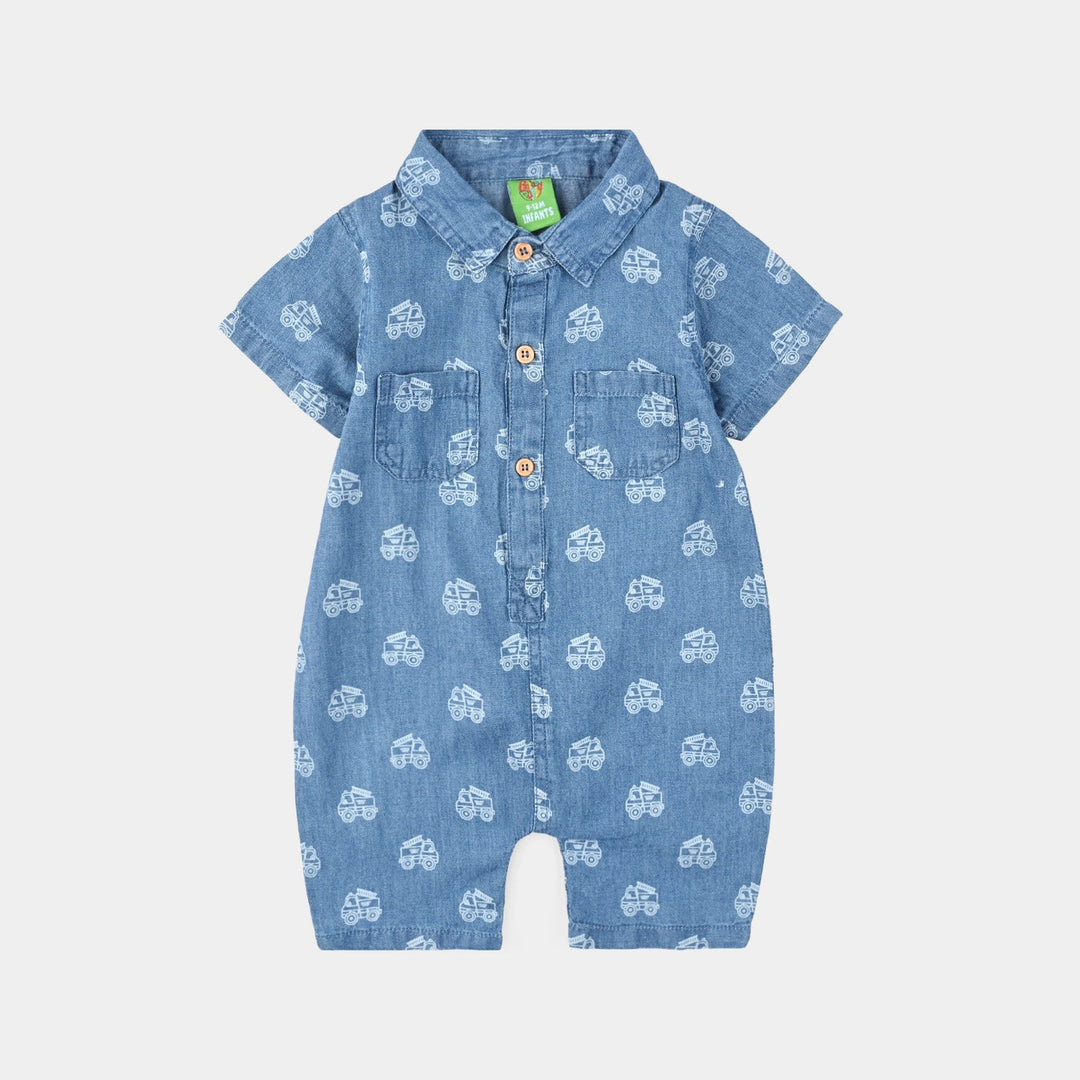 Infant Boys Oxford Romper Contrast Texture - White/Grey