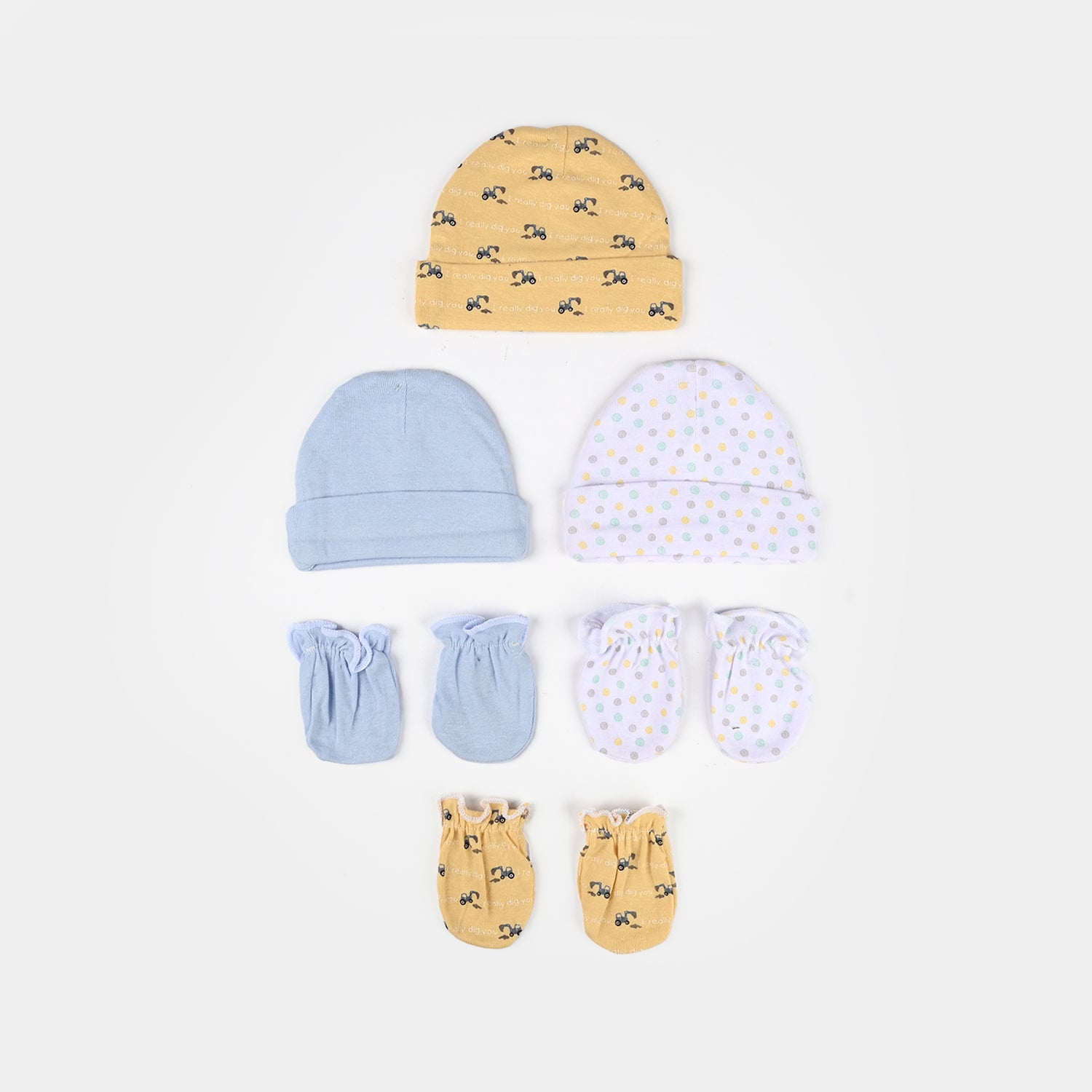 This comprehensive set of caps and mittens is ideal for active babies. Boasting an attractive print and calming light hues, this set adds a stylish flair while providing exceptional warmth. Expertly crafted with premium quality fabric, this accessory ensures a soft and gentle touch on delicate skin.