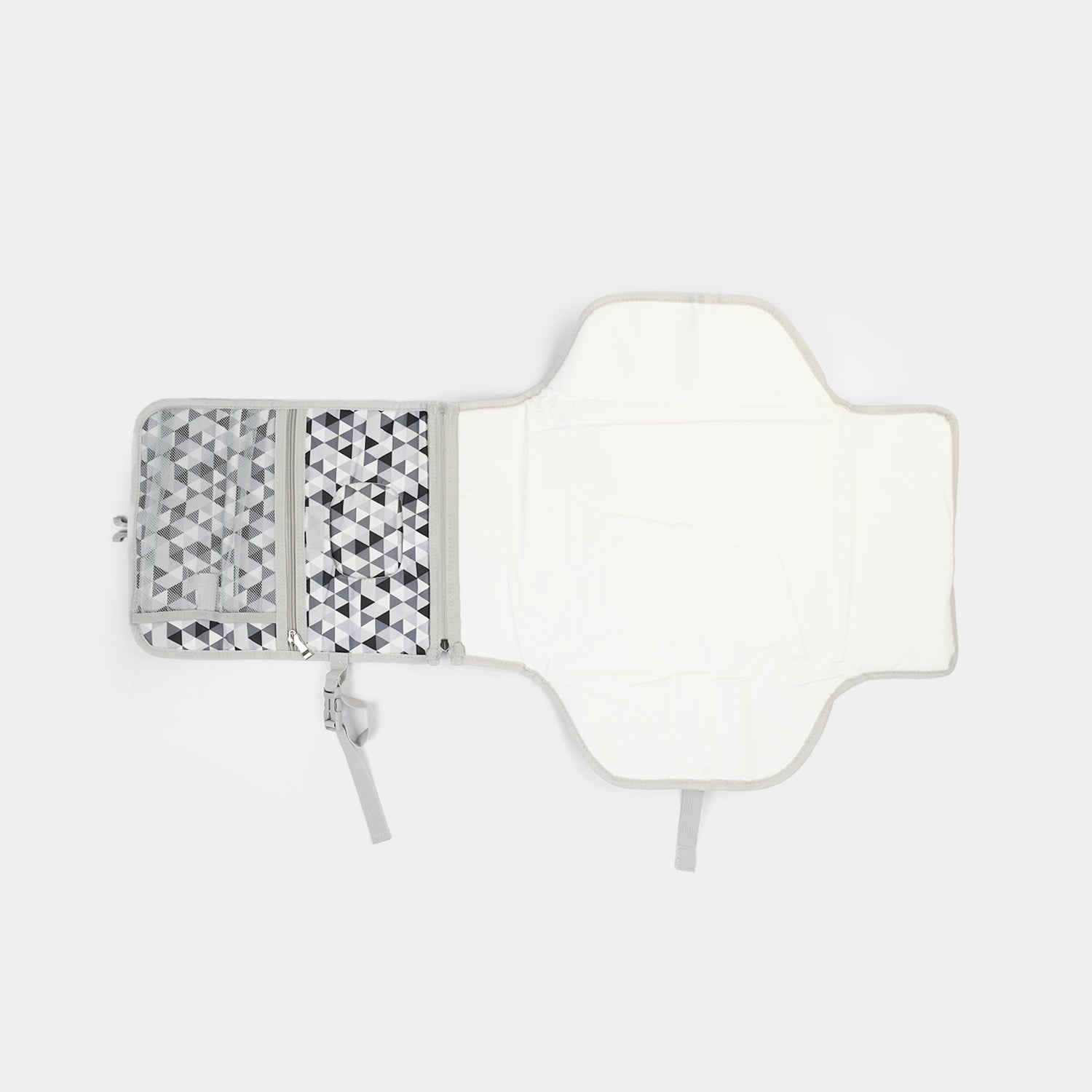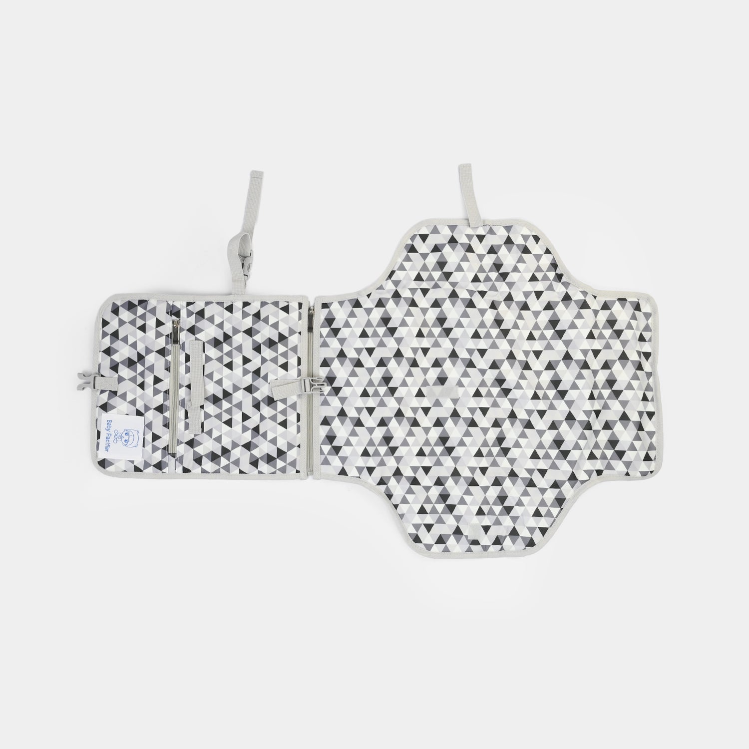 | DESIGN FEATURES | Waterproof changing surface with cushioned padding for baby's comfort, plus geometric triangle pattern in multi-colour design |