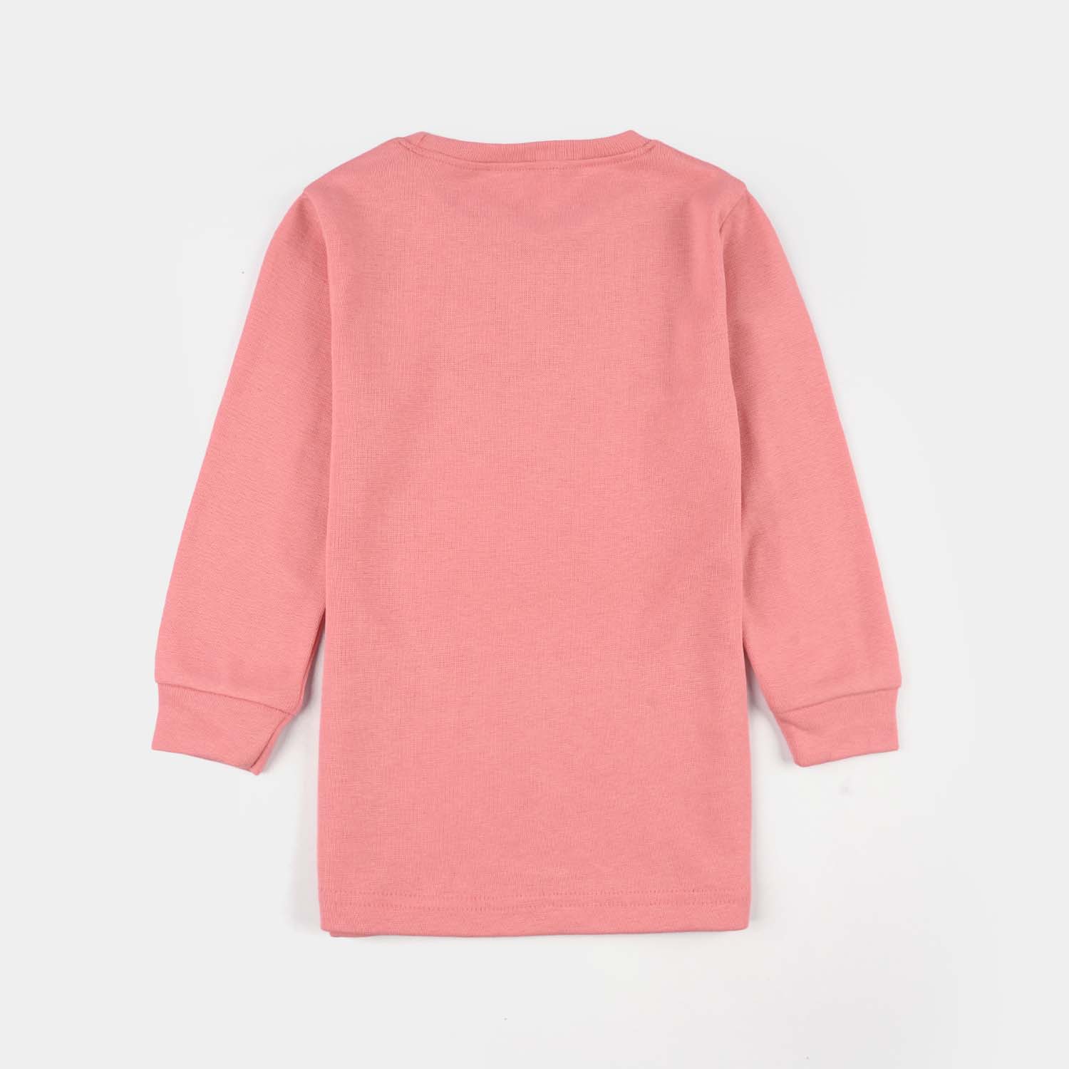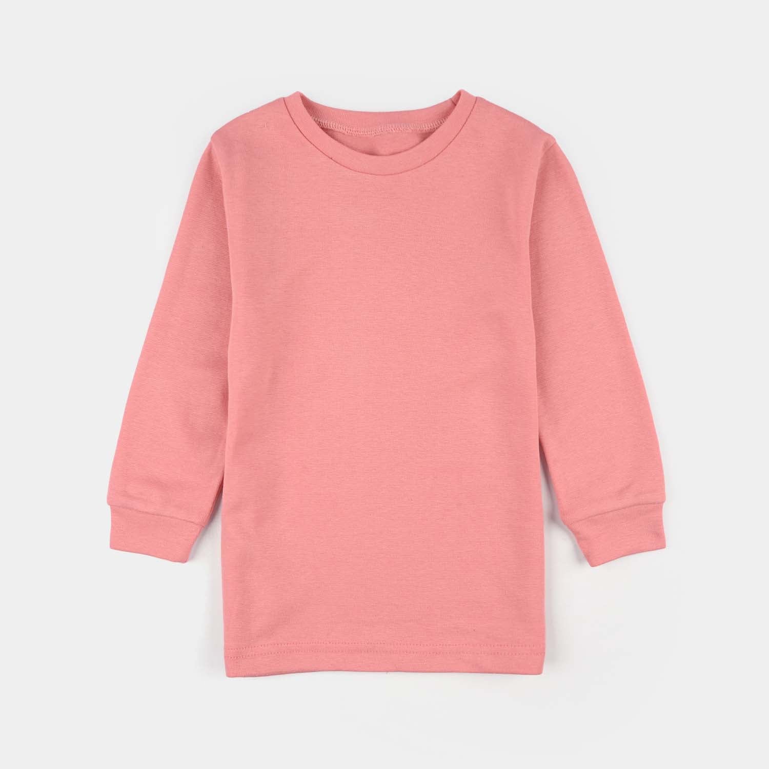 Peach thermal suit with a round neck, full sleeves, and pajamas, soft, warm, and ideal for winter layering.