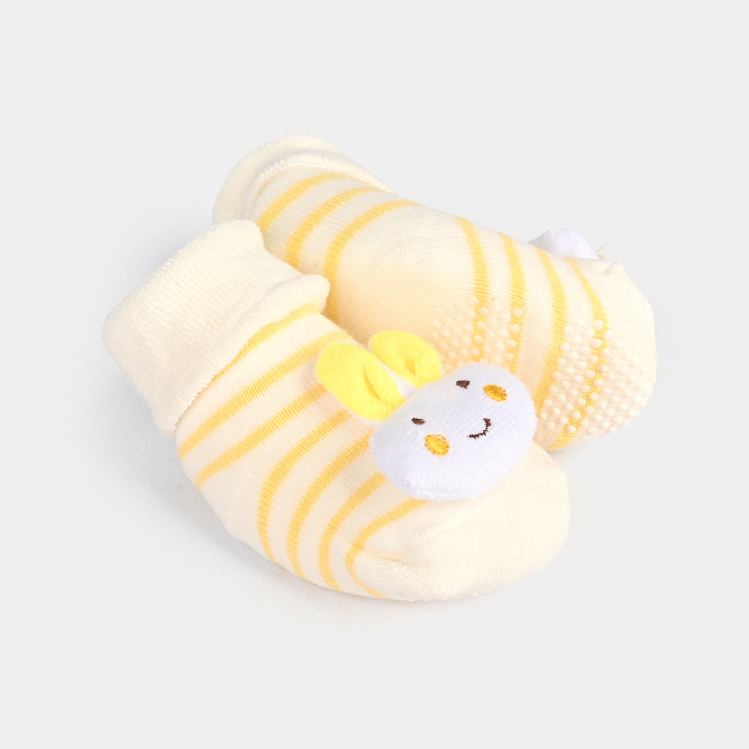 Soft and cozy baby non-slip socks booties for infants aged 6-12 months, featuring bunny/rabbit-themed embellishments. Designed for warmth, comfort, and easy wear while supporting natural foot development