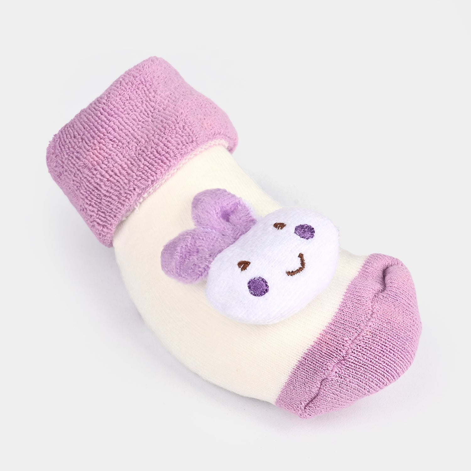 Soft and cozy baby non-slip socks booties for infants aged 6-12 months, featuring rabbit-themed embellishments. Designed for warmth, comfort, and easy wear while supporting natural foot development