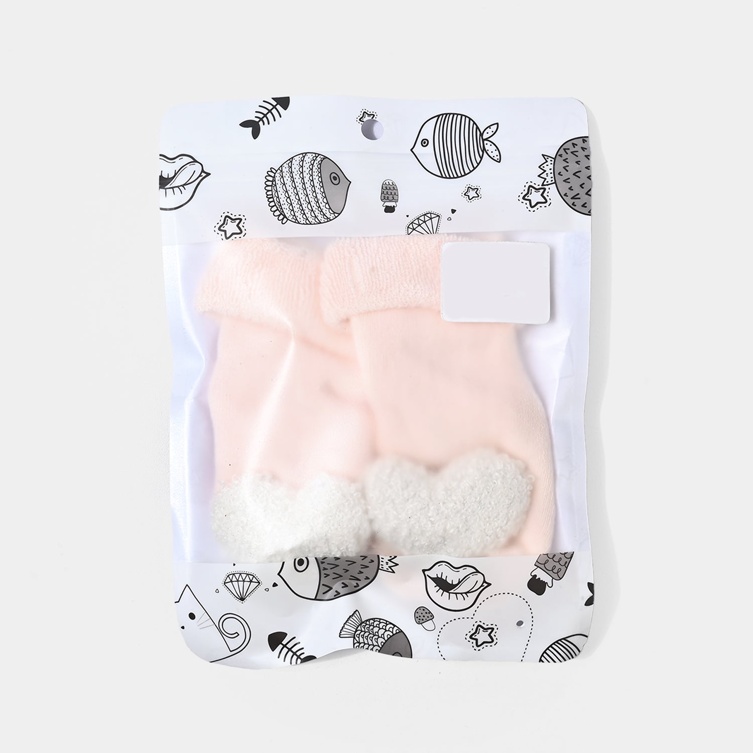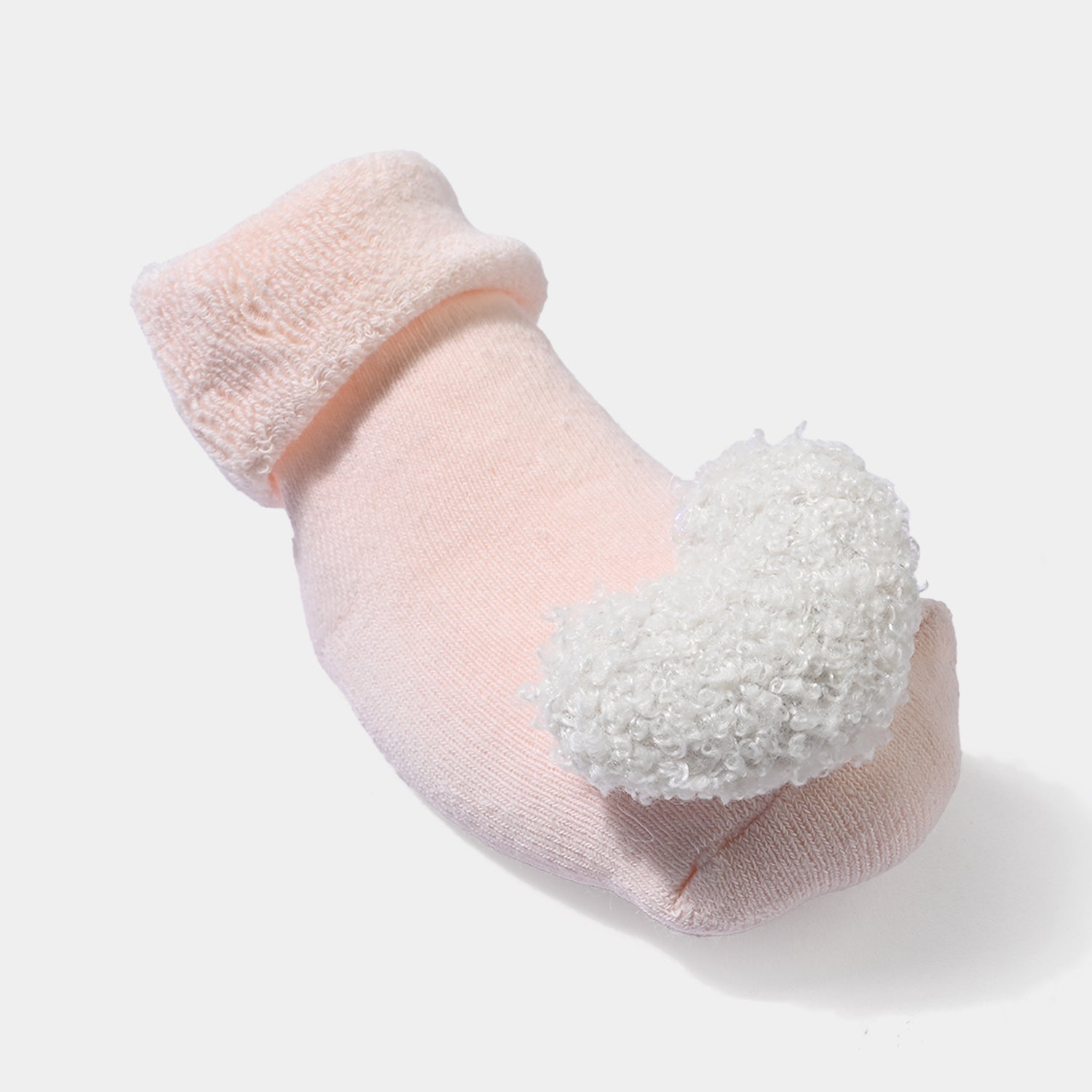 Breathable, soft, and cozy socks with a cute heart design. Keeps delicate newborn feet warm and comfortable in cold weather.