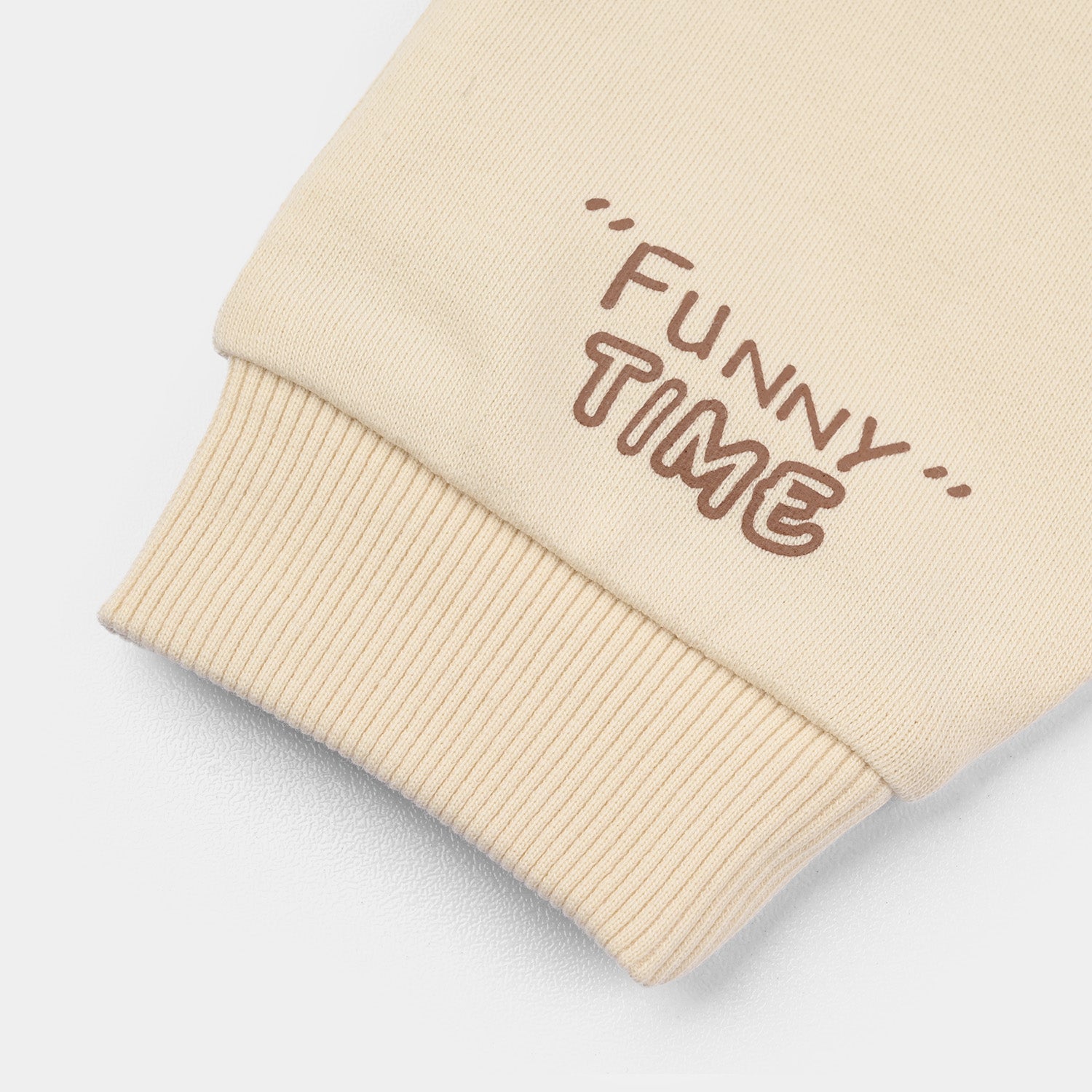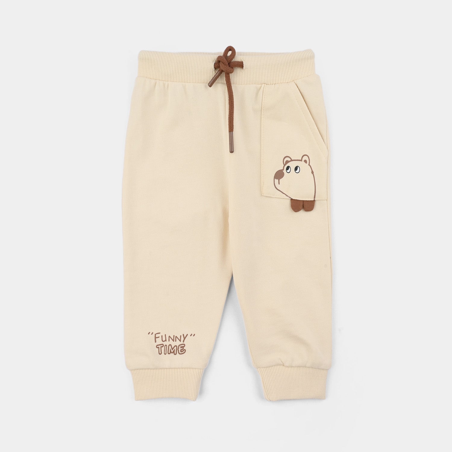 Boys Jersey/Terry Pajama in Beige featuring a cute printed pocket and a hemmed finish for a cozy, comfortable fit. Perfect for lounging or bedtime wear.