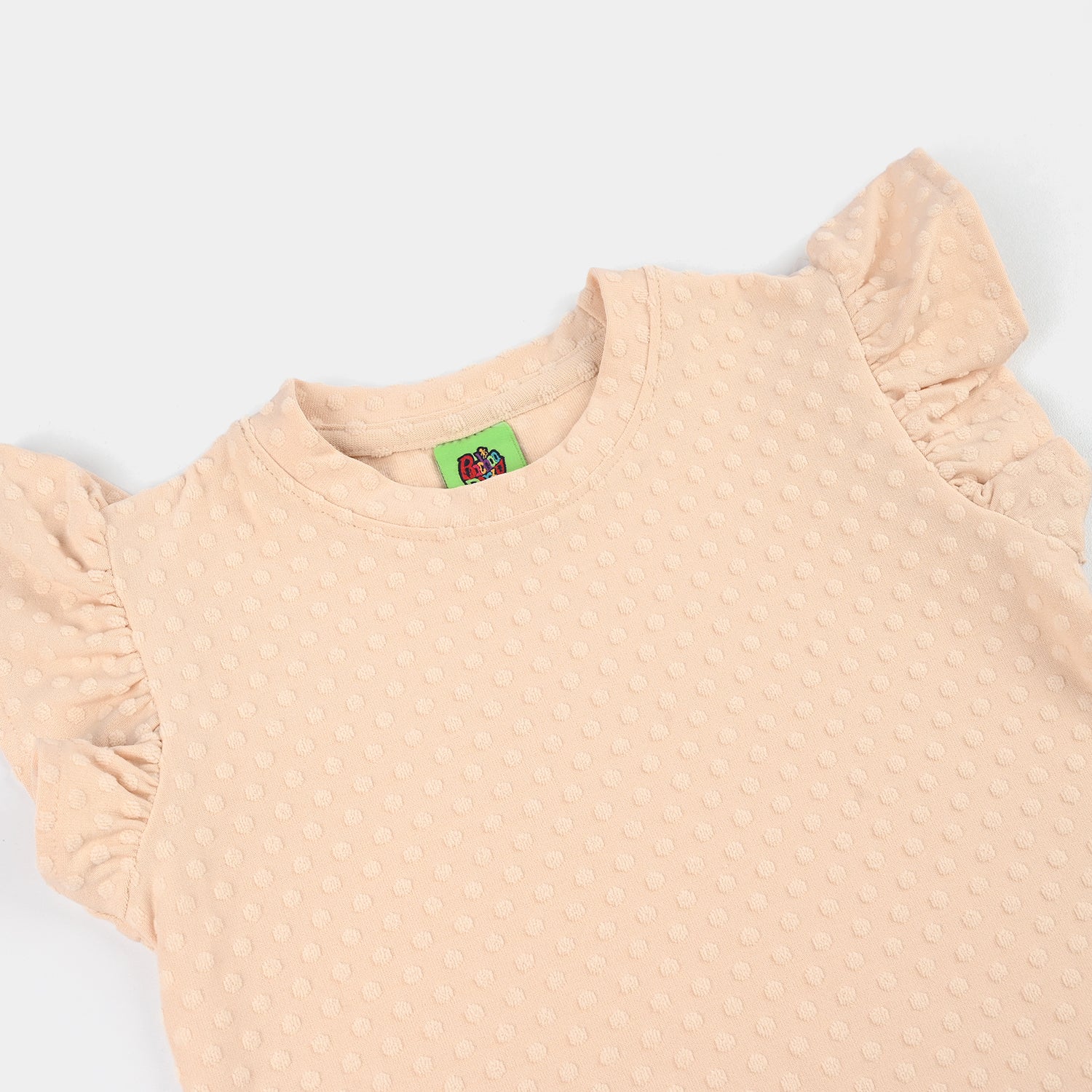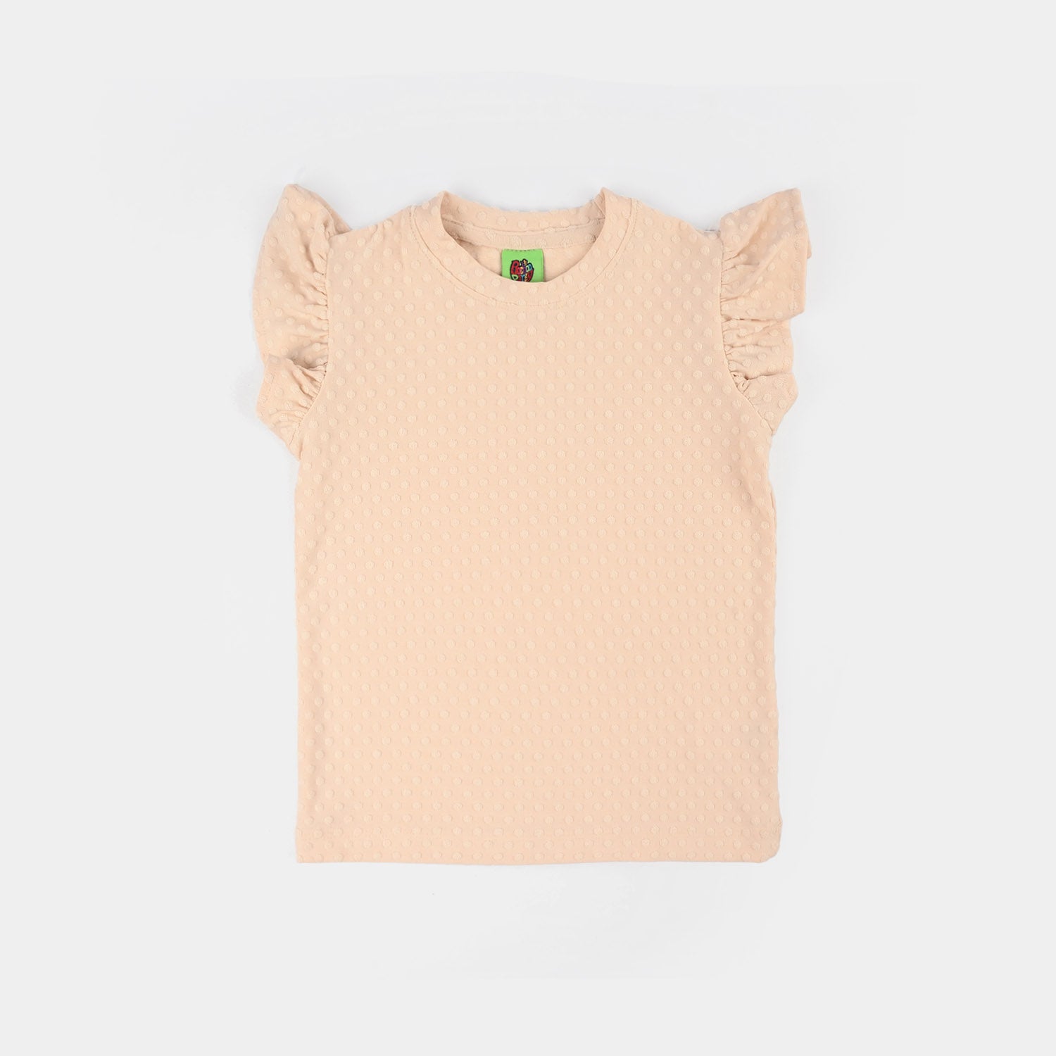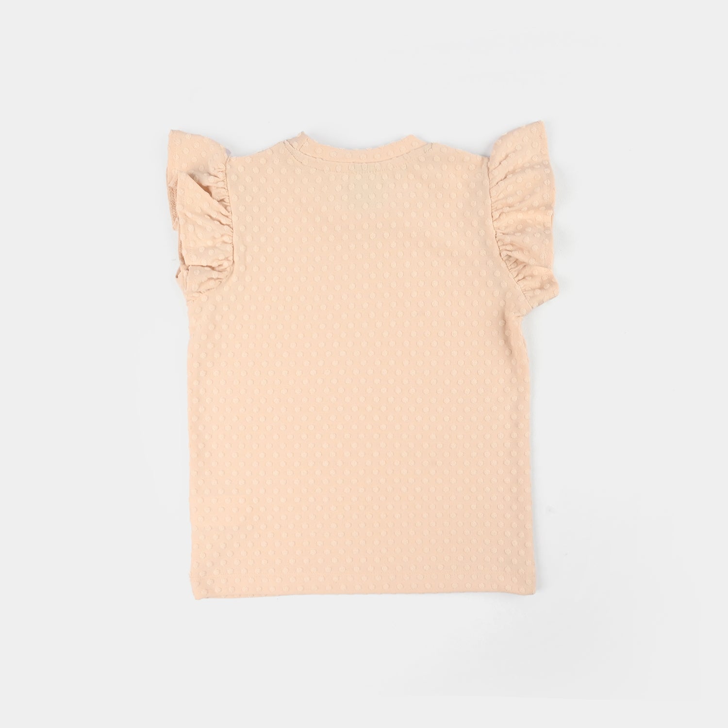 Infant girls' brown knitted jacquard T-shirt features a round neck and short frilled sleeves, perfect for cute and comfortable everyday wear.