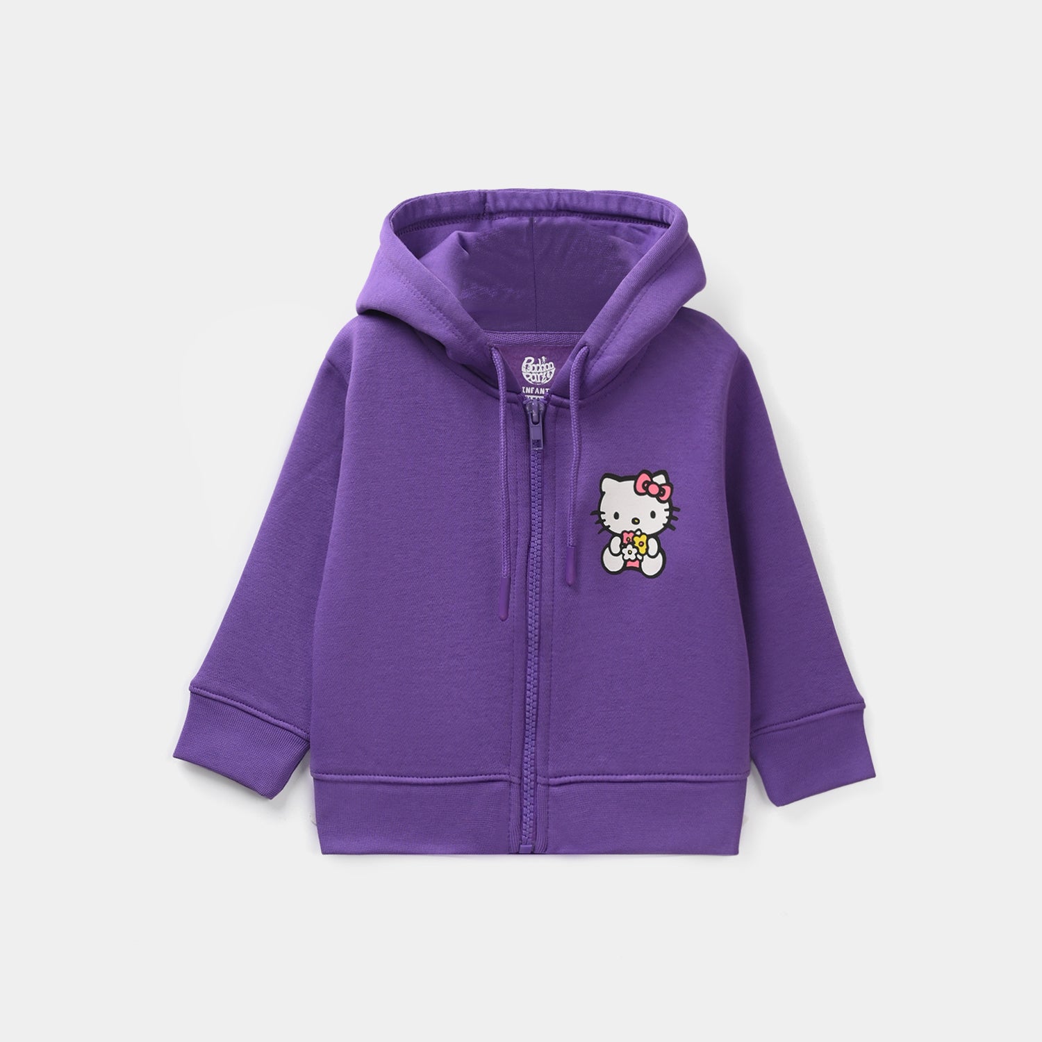 This purple zipper hoodie features an attached hood, full sleeves, and a cute Hello Kitty print on the front. It’s soft, cozy, and perfect for easy layering.