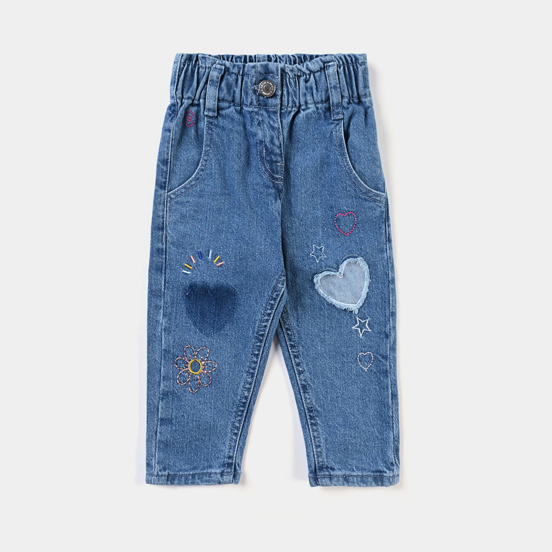 Infant Girls Denim Stretch Denim Pant Rabbit-Mid Blue