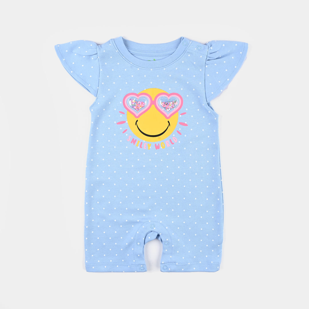 Infant Girls Cotton Interlock Knitted Romper-Dir Blue