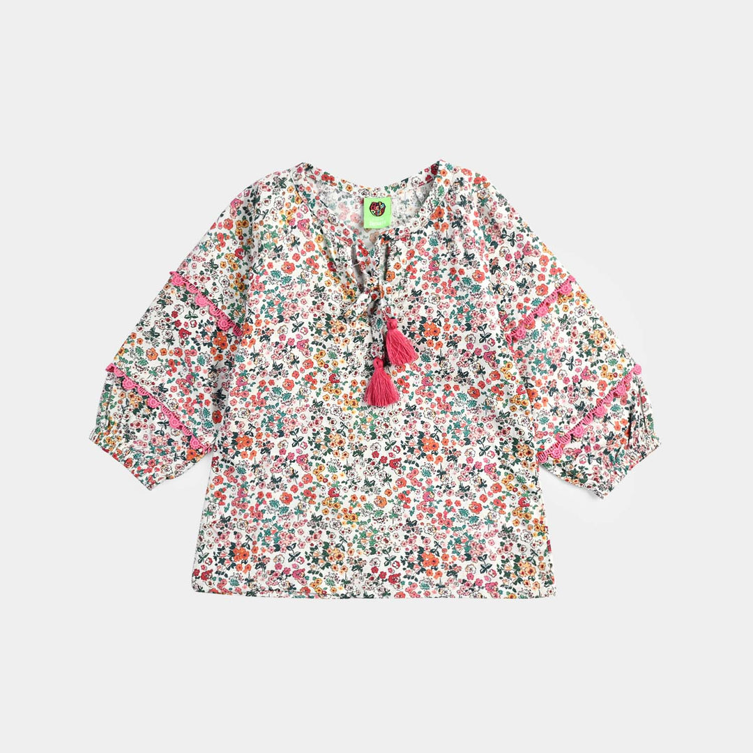 Infant Girls Cotton Poplin Casual Top Chin Print-Multi