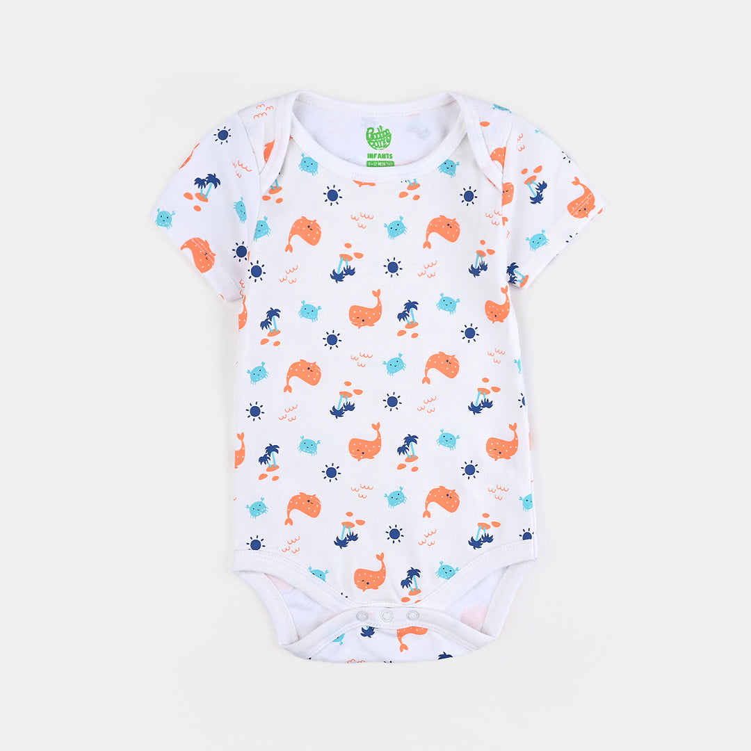 Infant Unisex Cotton Interlock Romper Fish Ocean-White