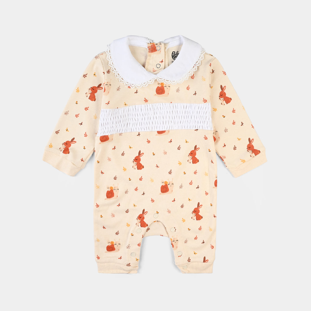 Infant Girls Cotton Interlock Romper Rabbit-BEIGE