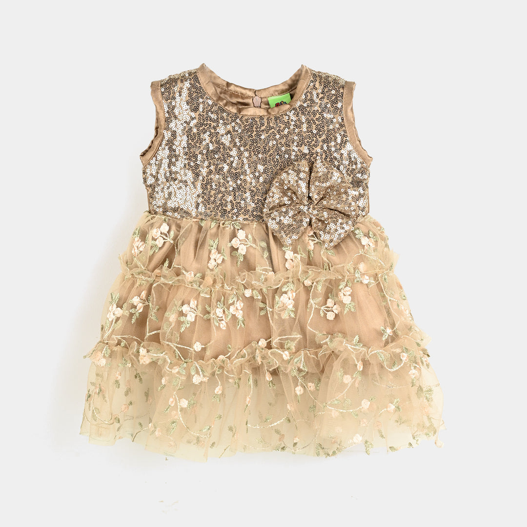 Infant Girls Net Fancy Frock Flower EMB Frill