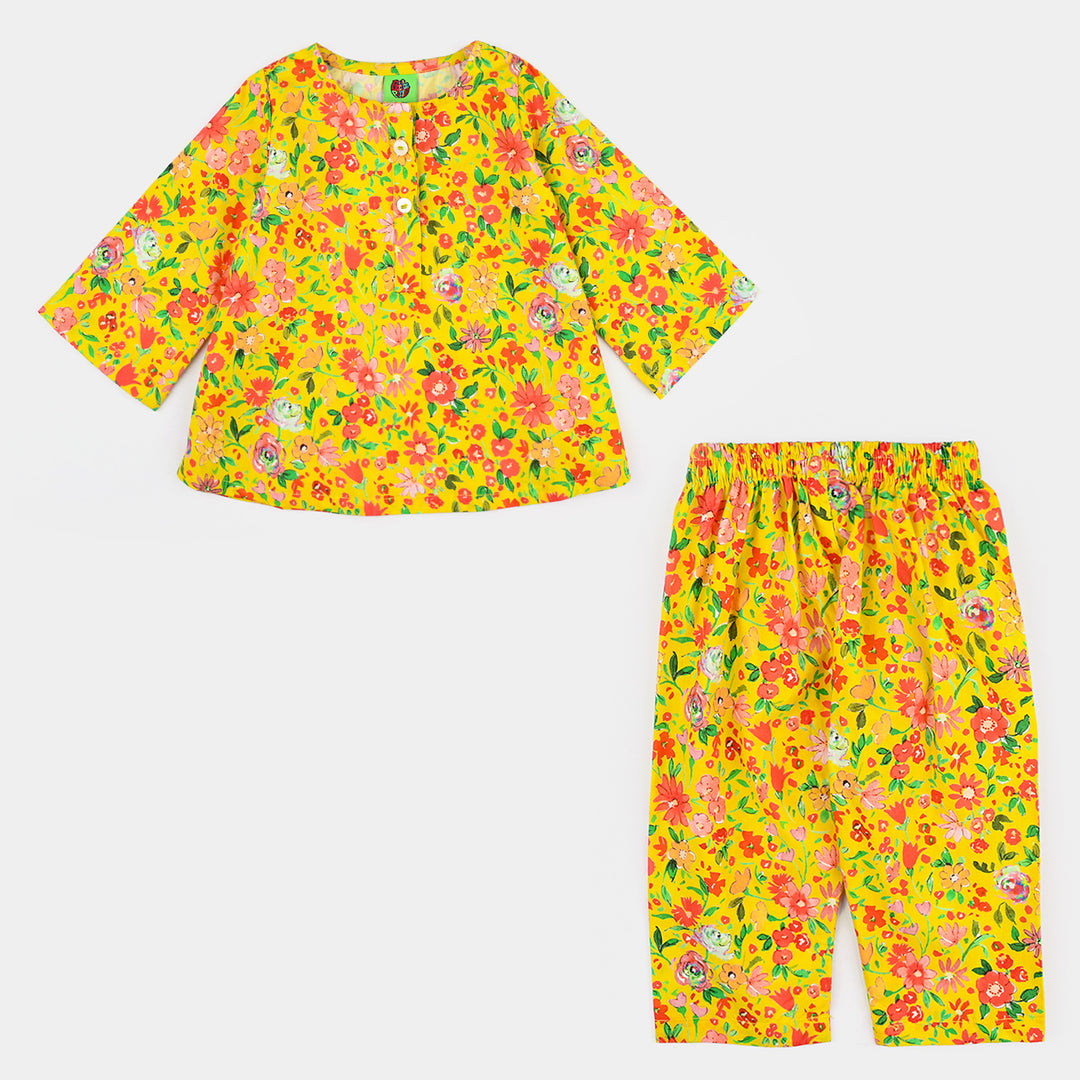 Infant Girls Cotton Printed 2 Pcs Vibrant-Yellow