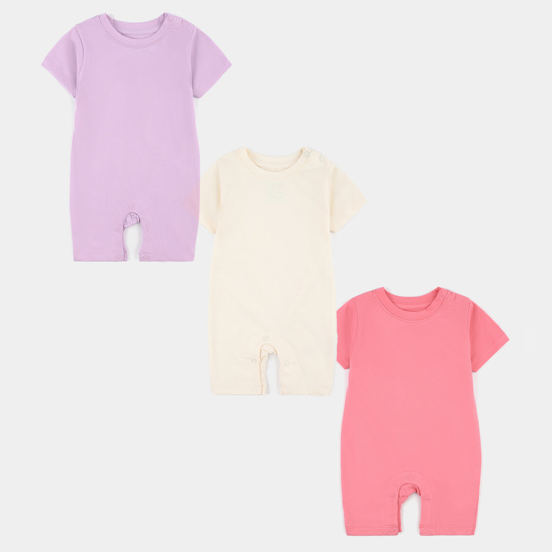 Pack Of 3 Infant Girls Cotton Jersey Basic Romper Set