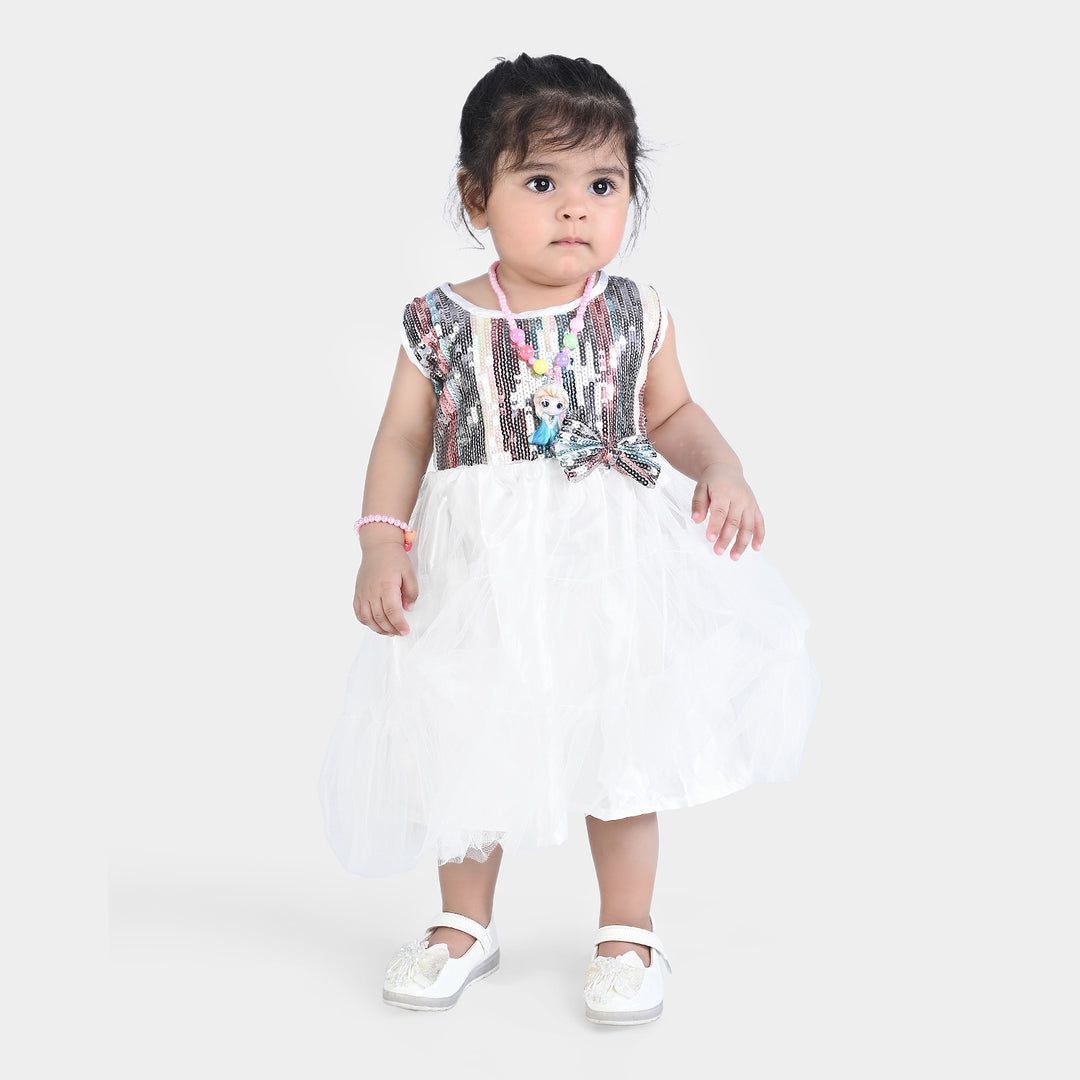 Infant Girls Poly Satin Fancy Frock Polka Dots-Multi