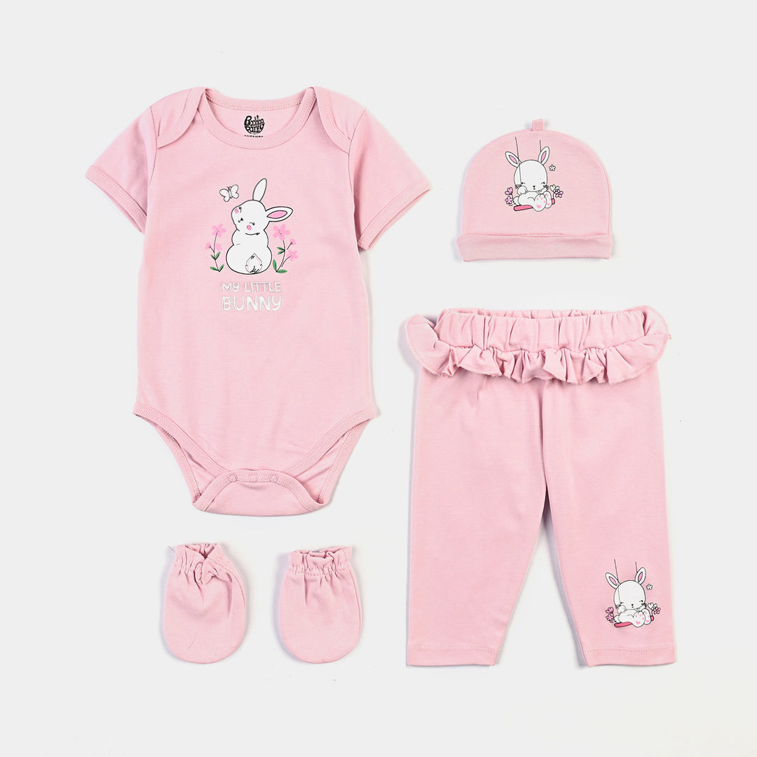 Infant Girls Cotton Interlock 3 Piece Sando Set Bunny