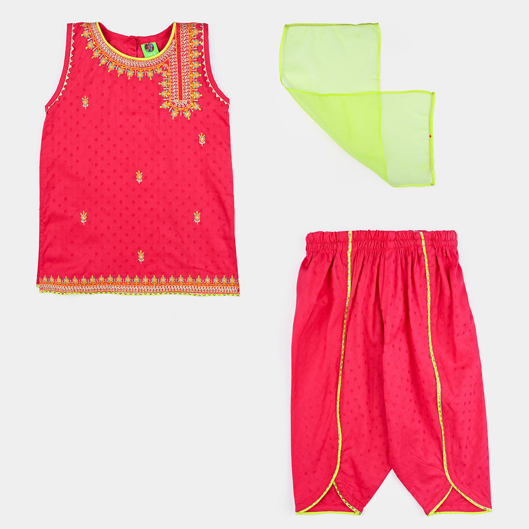 Infant Girls Jacquard 3 Pcs Suit Gulistaan-Red