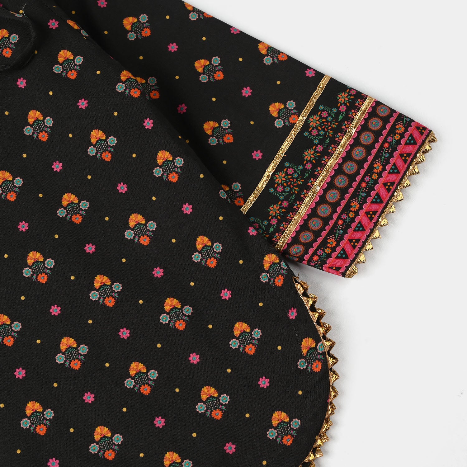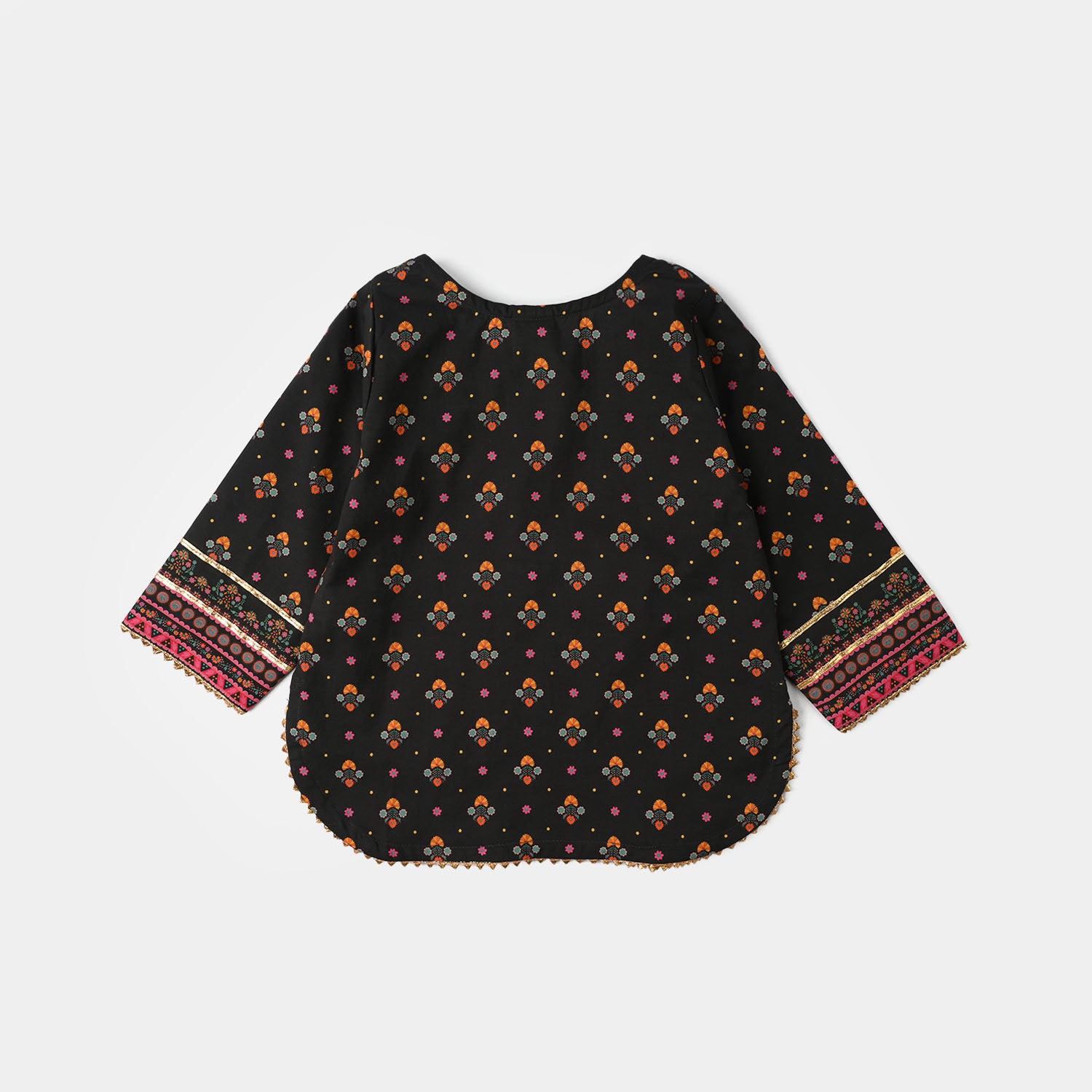 Infant Girls Cotton Printed Kurti (Swan) - Black