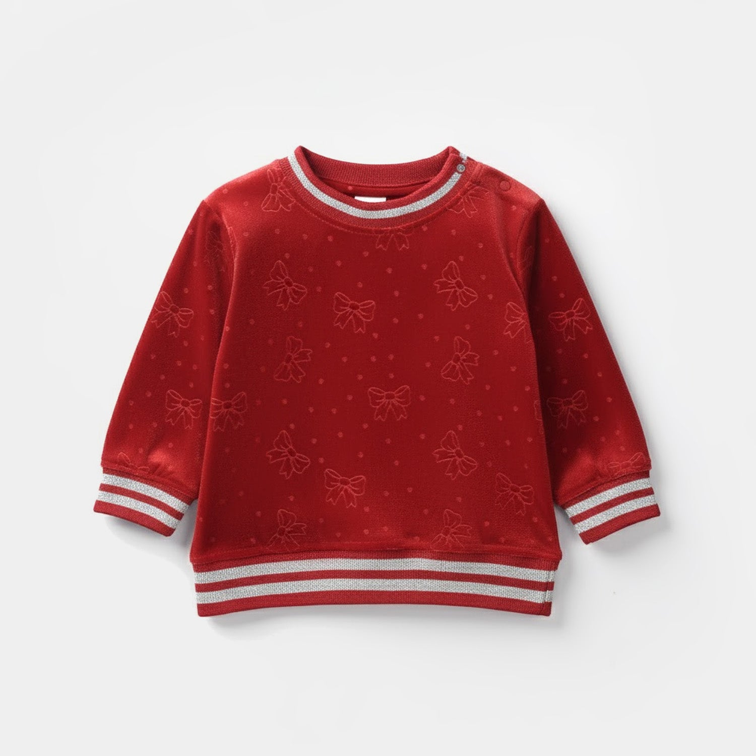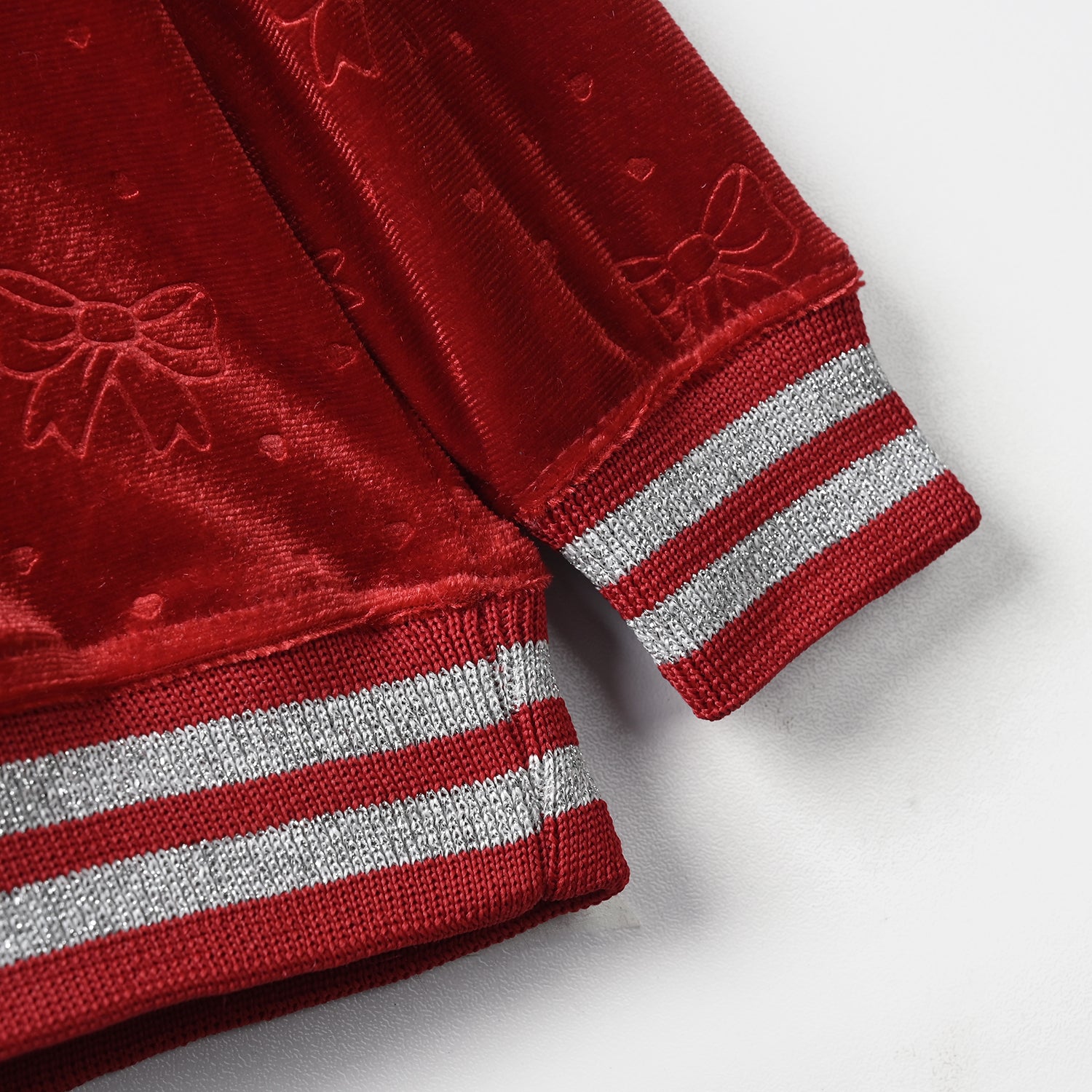 Bachaa Party brings you the best price Infant Girls Velvet Sweatshirt Bow-Red with express shipping all over Pakistan.