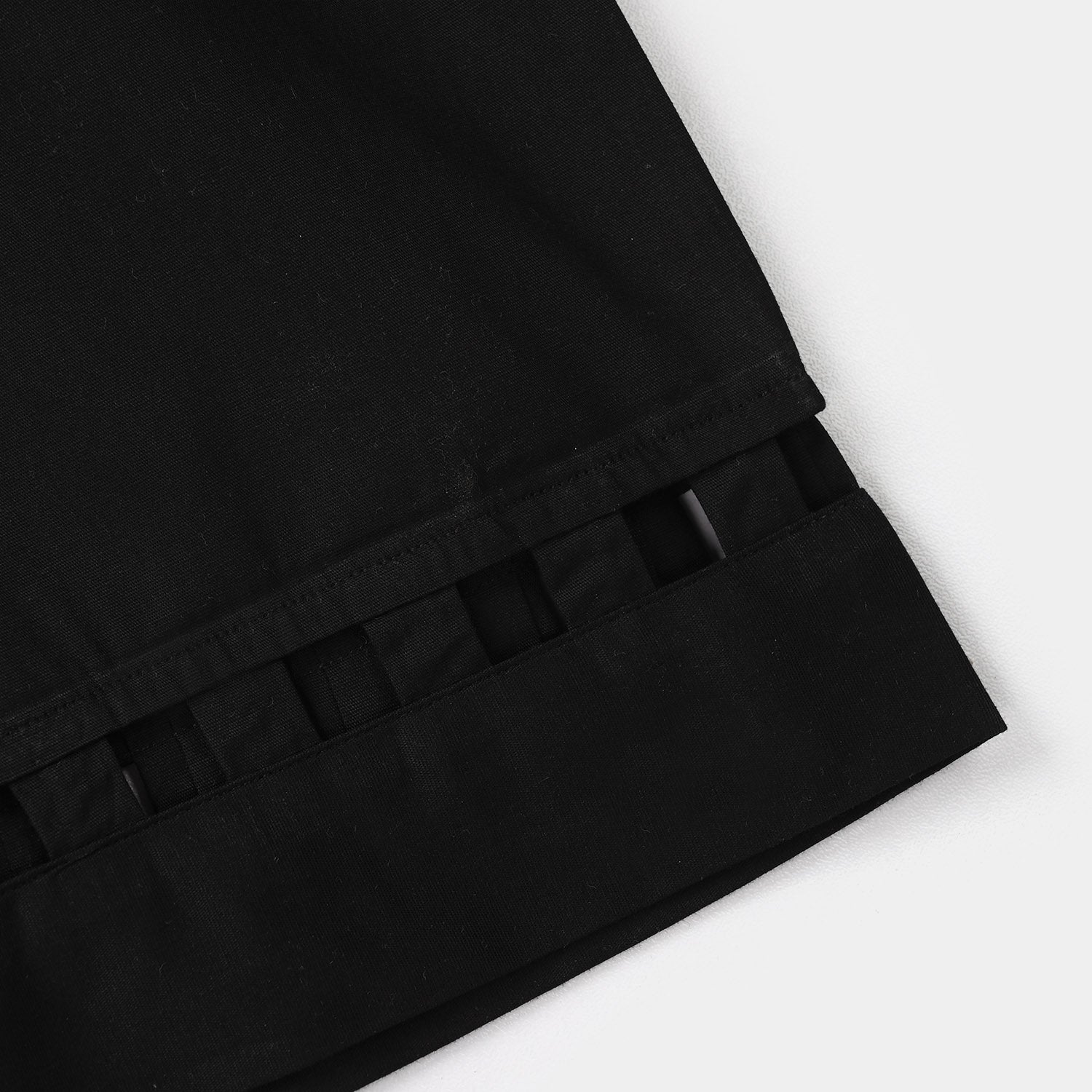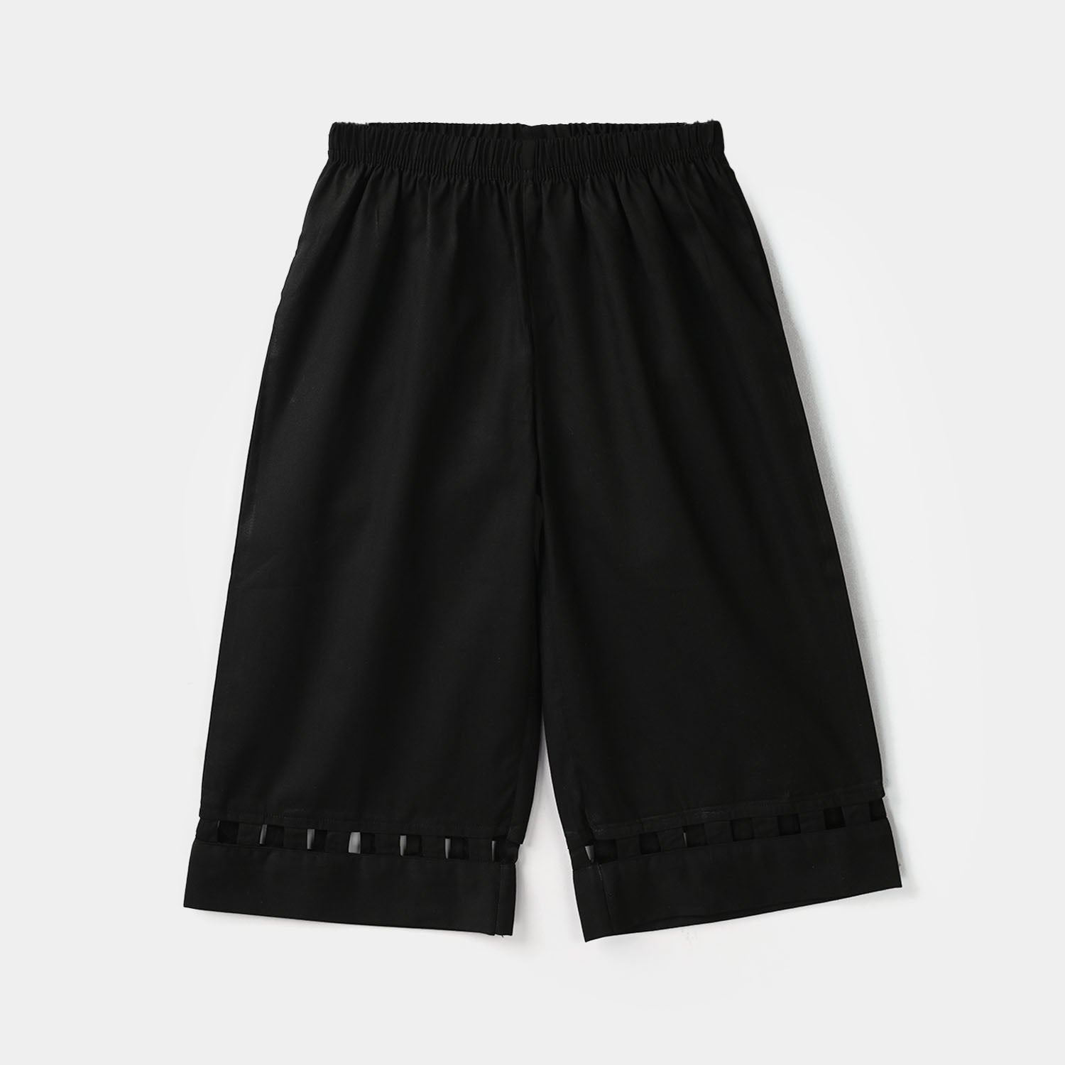 Black culottes featuring elegant hem detailing are designed for a stylish and comfortable fit.