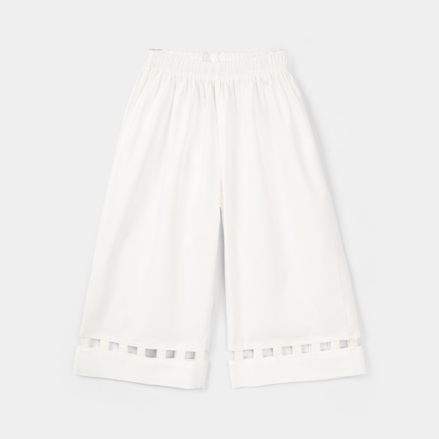 Infant girls’ white cotton culotte pants with detailing, easy to pair with any kurti for a complete look.