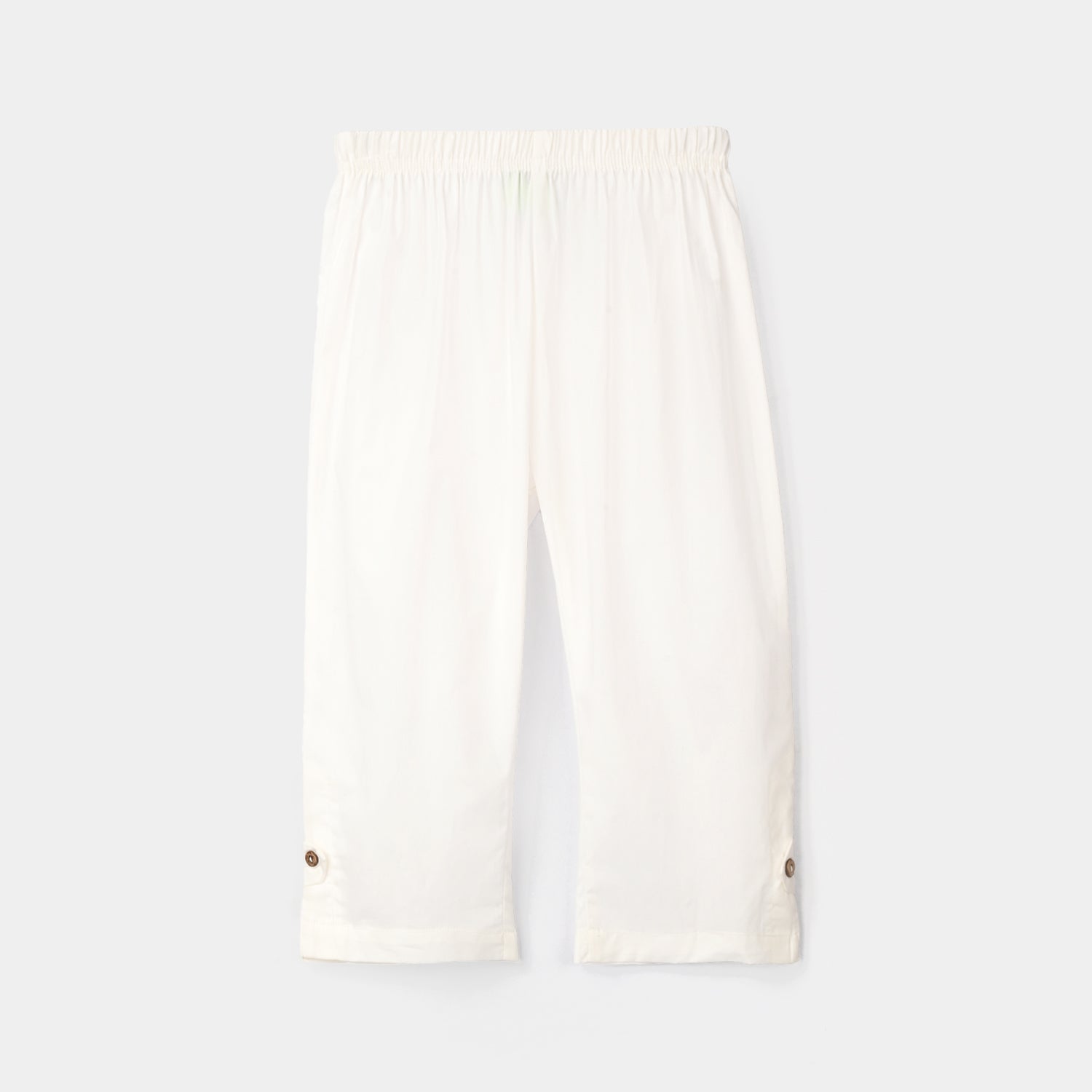 Girls white straight-fit cotton pants featuring button detailing on hems, perfect to pair with any kurta/kameez for a smart and stylish look.