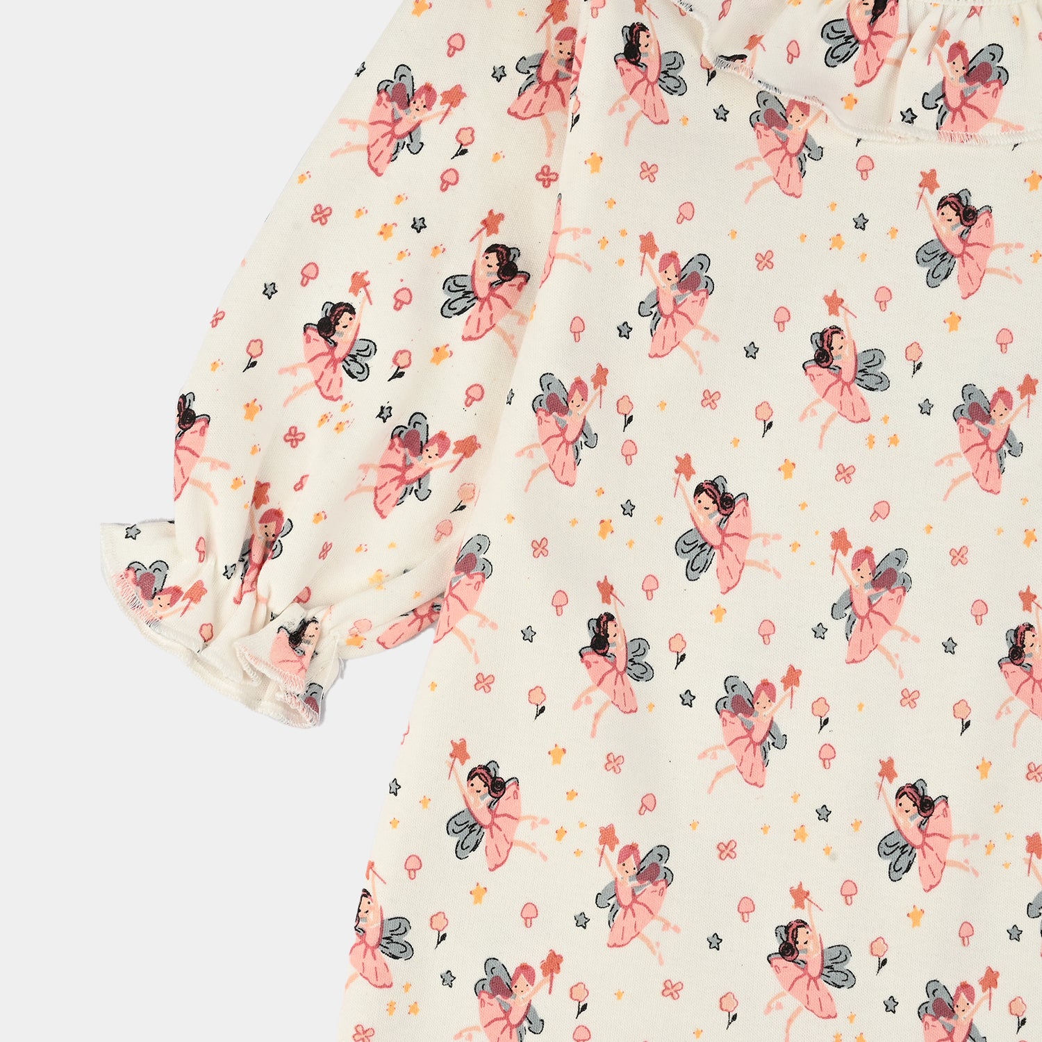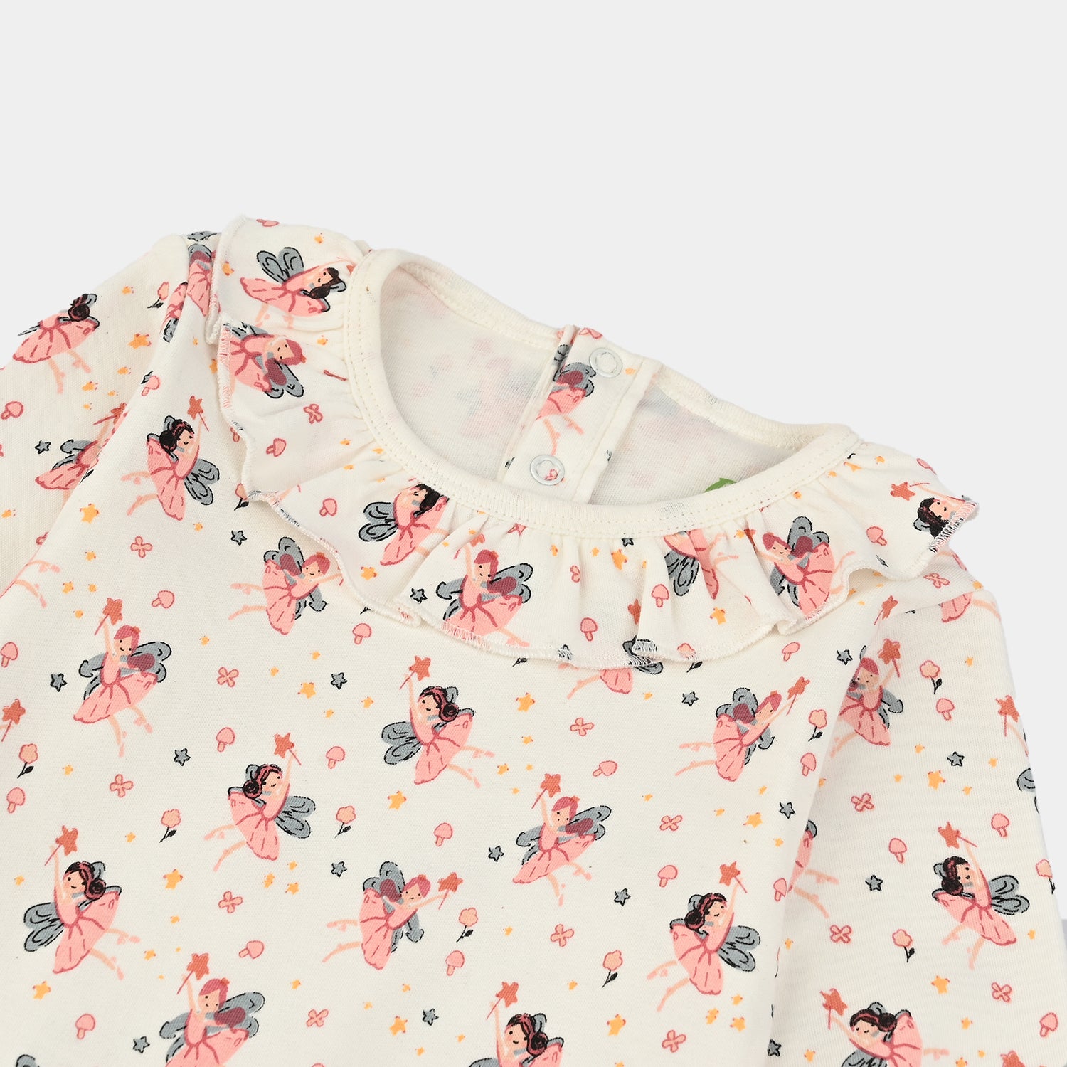 Keep your baby girl cozy and cute in this romper. Crafted from soft, breathable fabric, it includes a sweet romper with a round ruffled neckline and built-in socks, gentle on delicate skin and perfect for all-day wear. Thoughtfully designed for comfort and convenience, it’s a great everyday outfit that blends style and practicality.