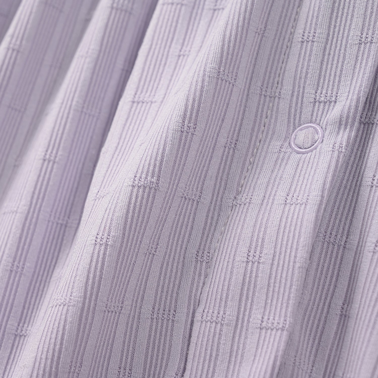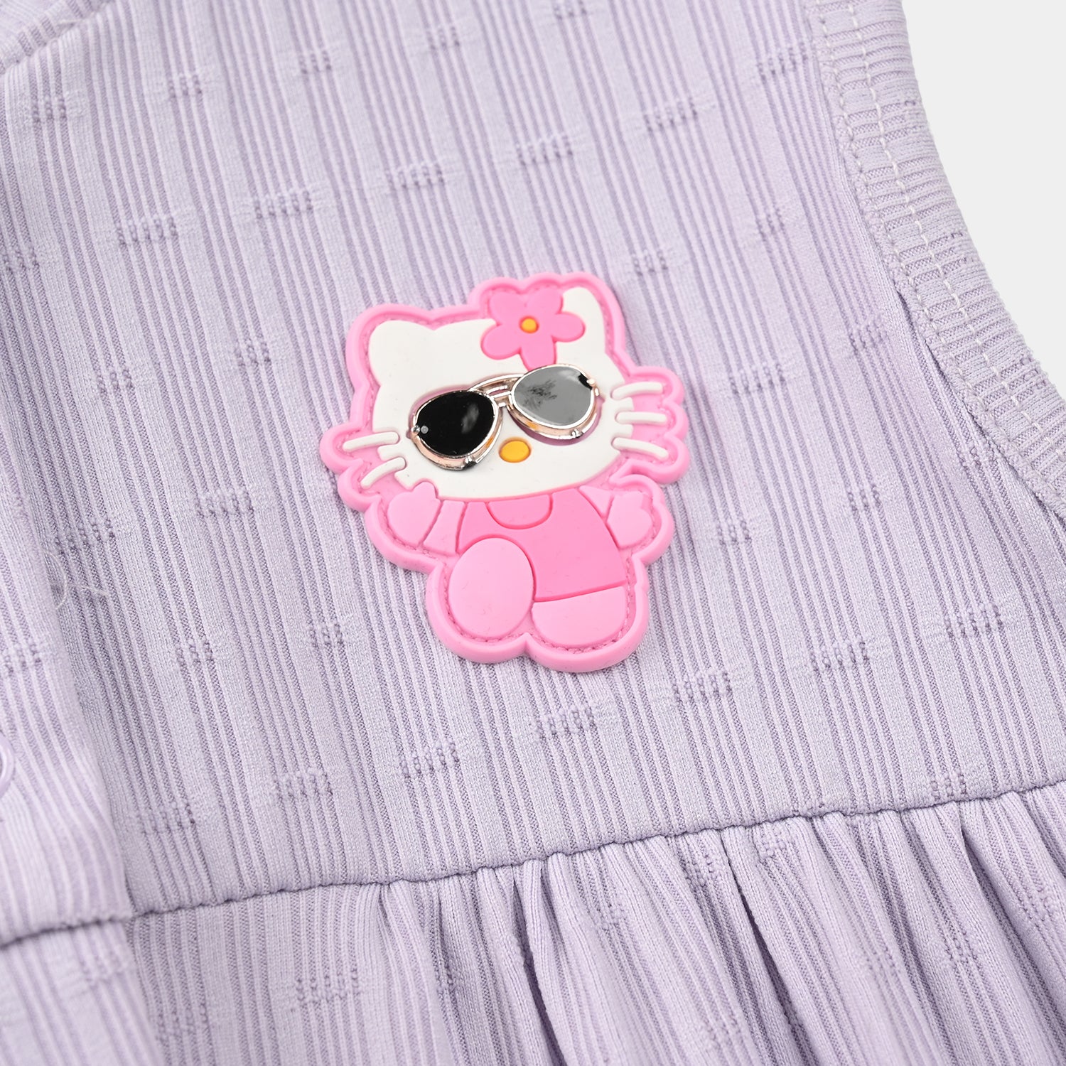 Purple jacquard knitted sleeveless romper with bows on the shoulders, front opening, elastic hems, full length, and pleated detailing for a cute and comfortable look.