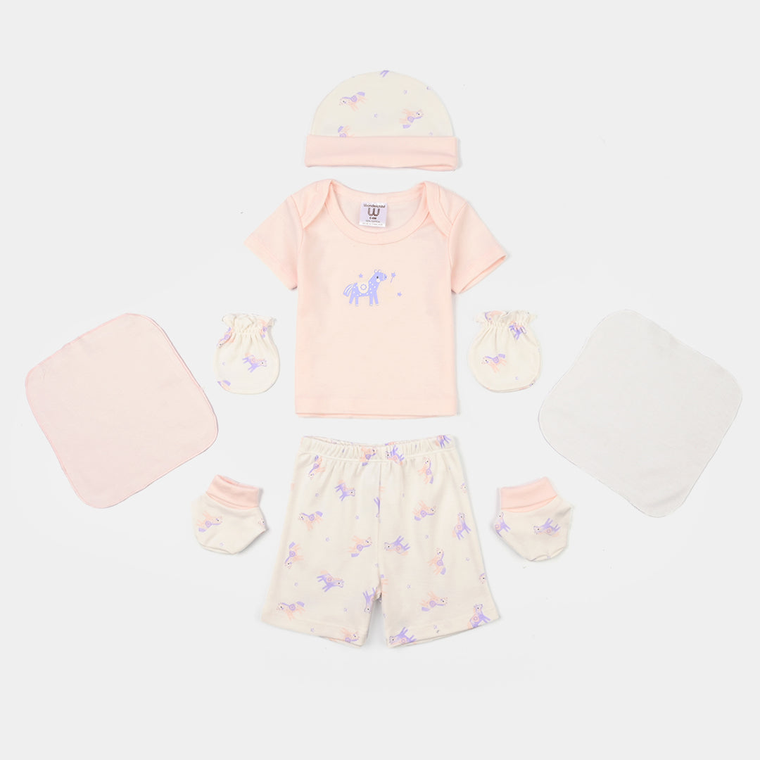 Infant Girls Cotton Interlock 7 Piece Set Character-Pink