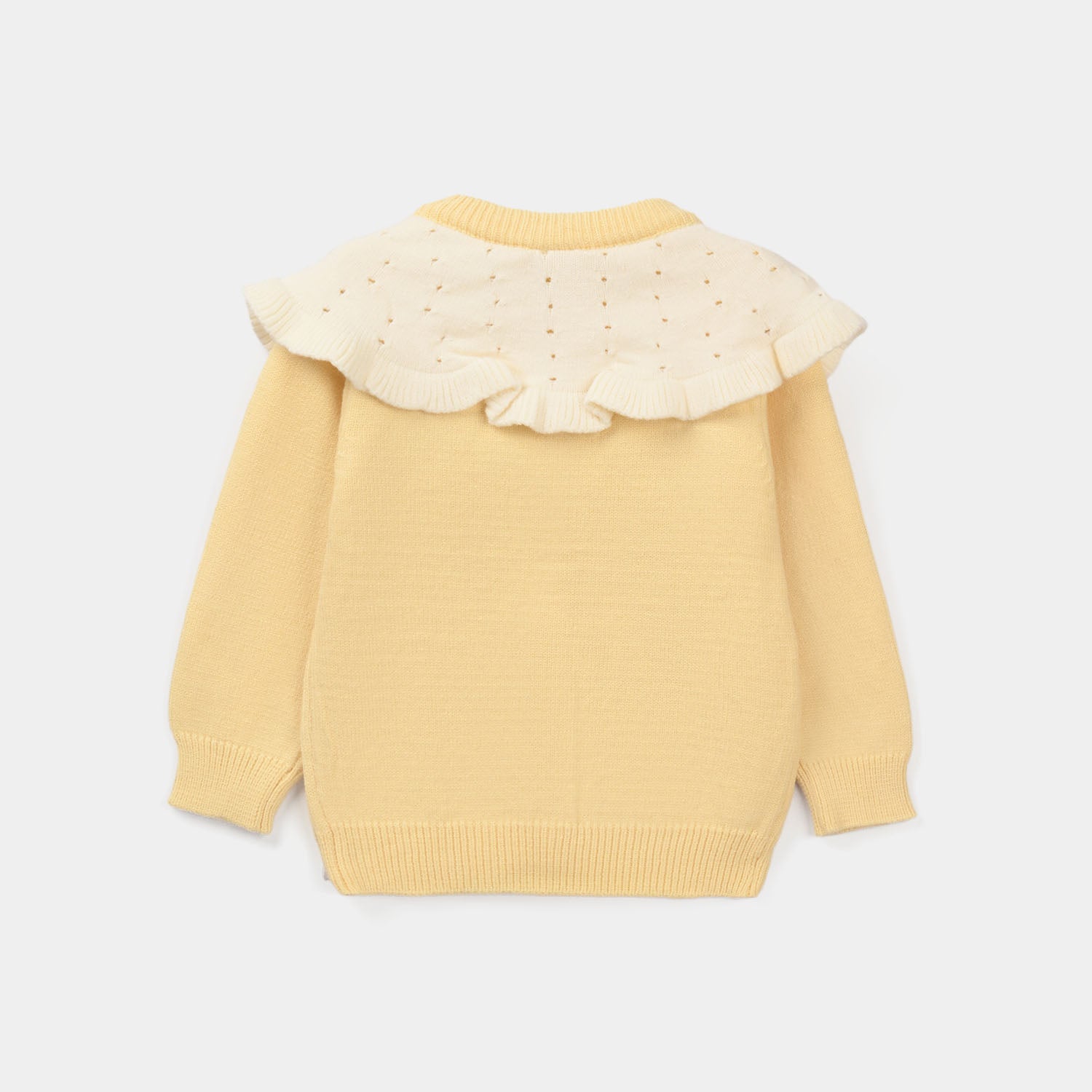 Infant Girls Acrylic Sweater-Flower Bow-Yellow