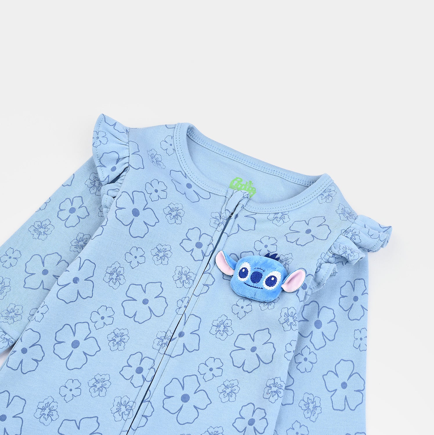 Bachaa Party brings you the best price Infant Girls Cotton Interlock Romper STITCH-Blue with express shipping all over Pakistan.