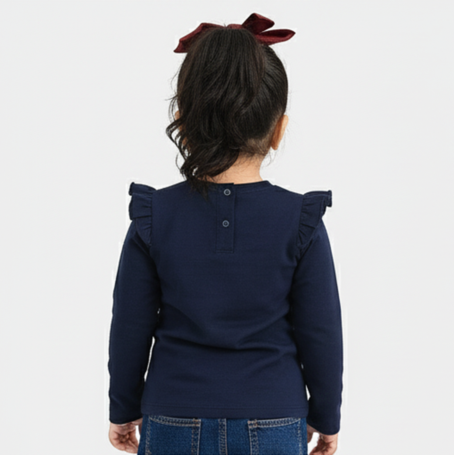 A comfy everyday tee, made in soft cotton jersey. This navy full-sleeve t-shirt features ruffles over the shooulders.