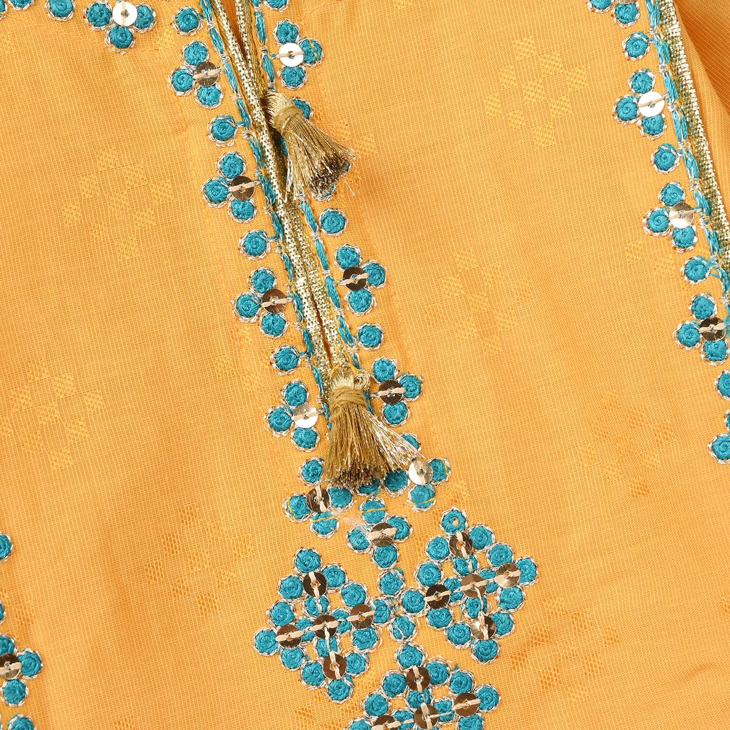 Infant girls' 3-piece set Ishq in yellow features full sleeves, a straight-fit kurti, embroidered culottes, and a contrast green dupatta for a complete festive look.