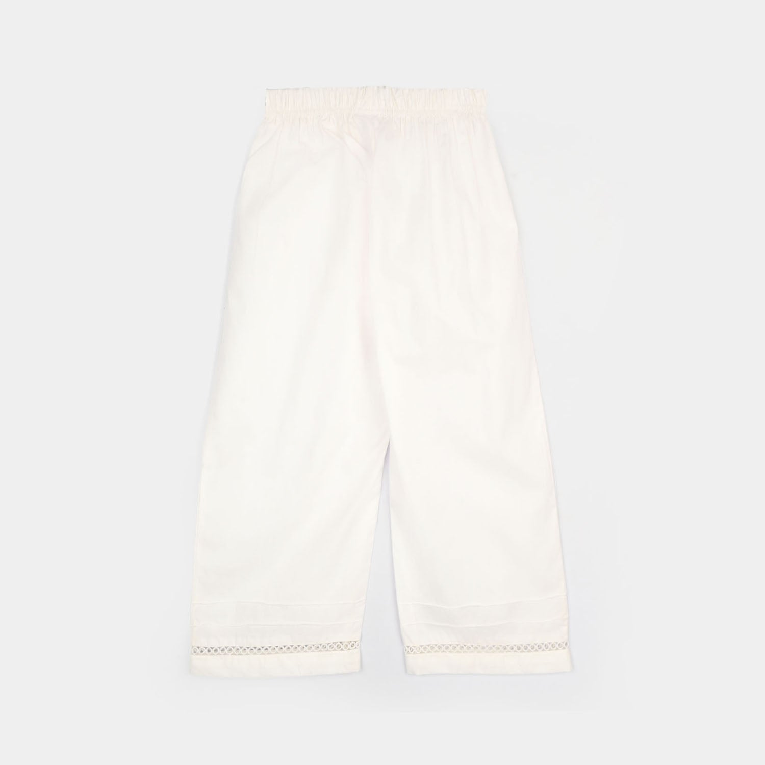 These white cotton culottes feature a comfortable, loose fit with pleats and lace detailing, making them perfect to pair with tops or tunics for a complete look.