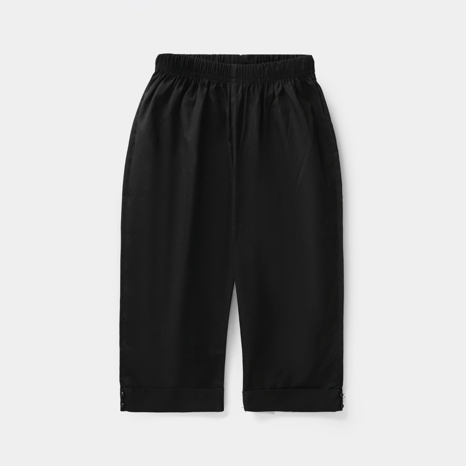 These basic black cotton trousers feature pearl detailing on the sides and can be paired with any top or kurta for a versatile look.
