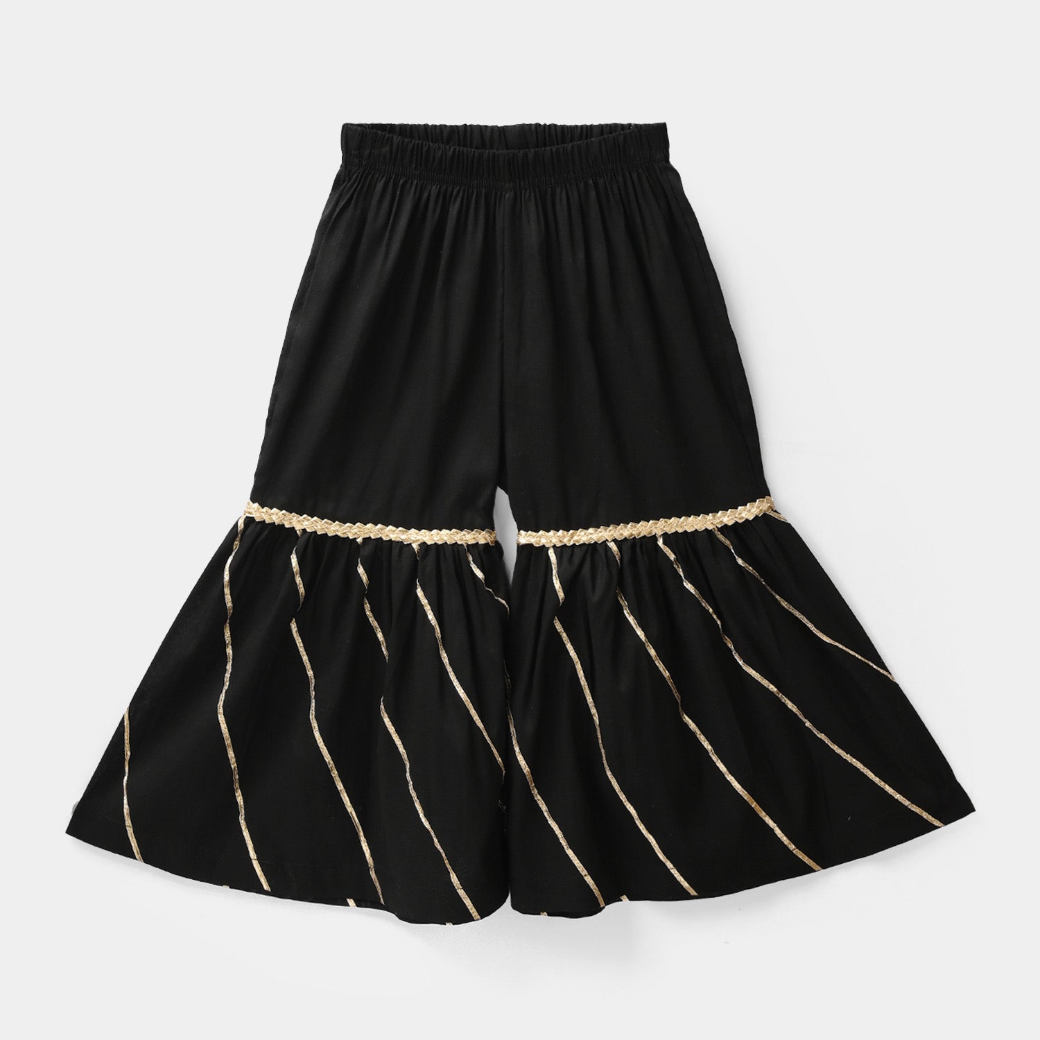 Elegant traditional gharara for girls in black featuring chhatta patti detailing, perfect for festive occasions and celebrations.