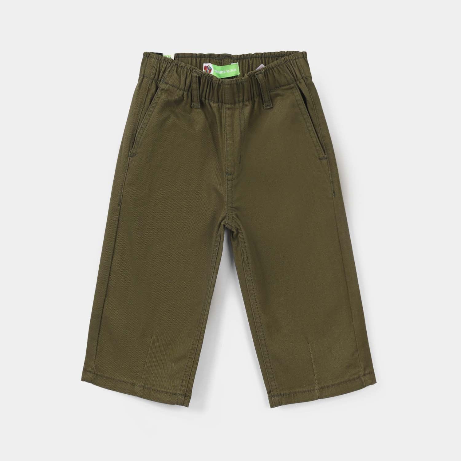 Infant girls' cotton pants in olive green feature a straight fit with pockets and can be paired with any top or shirt for a complete look.