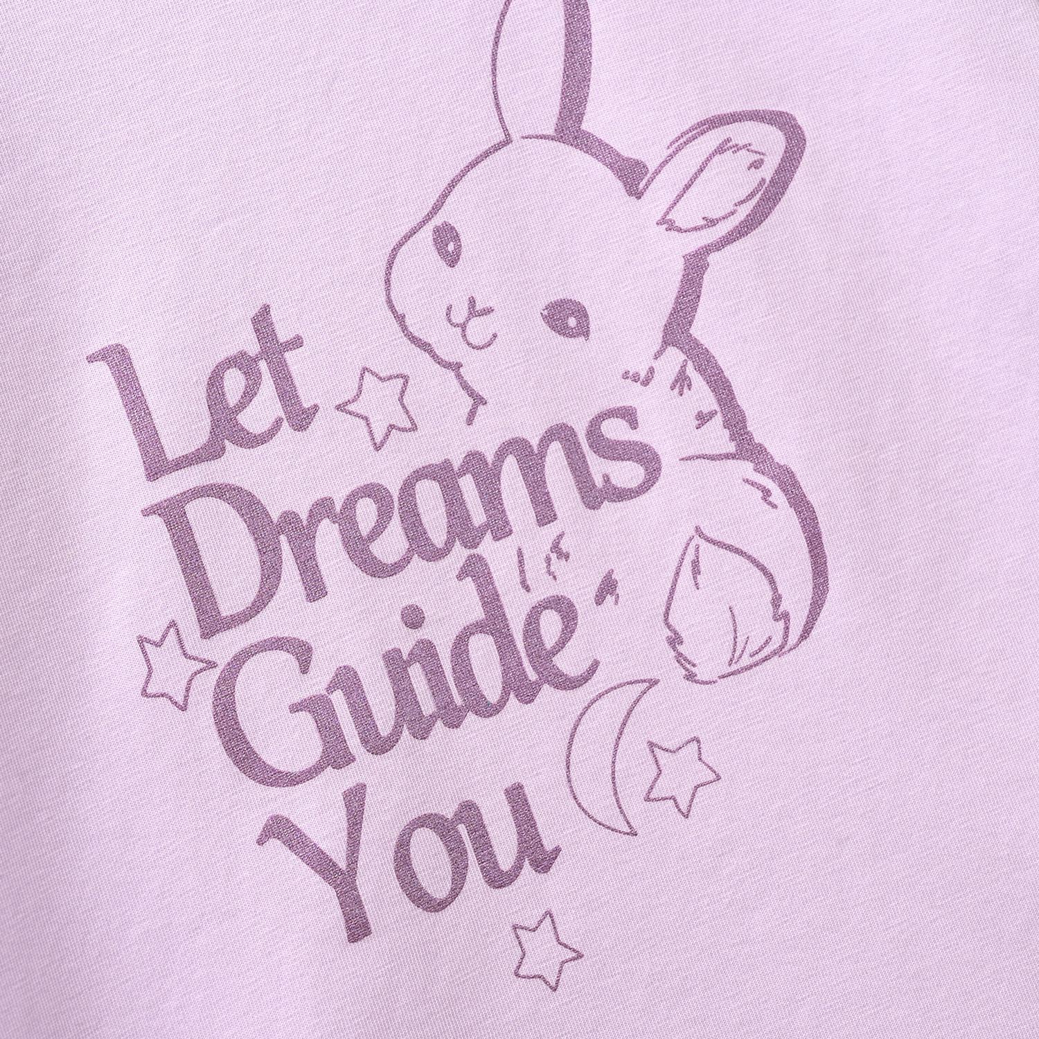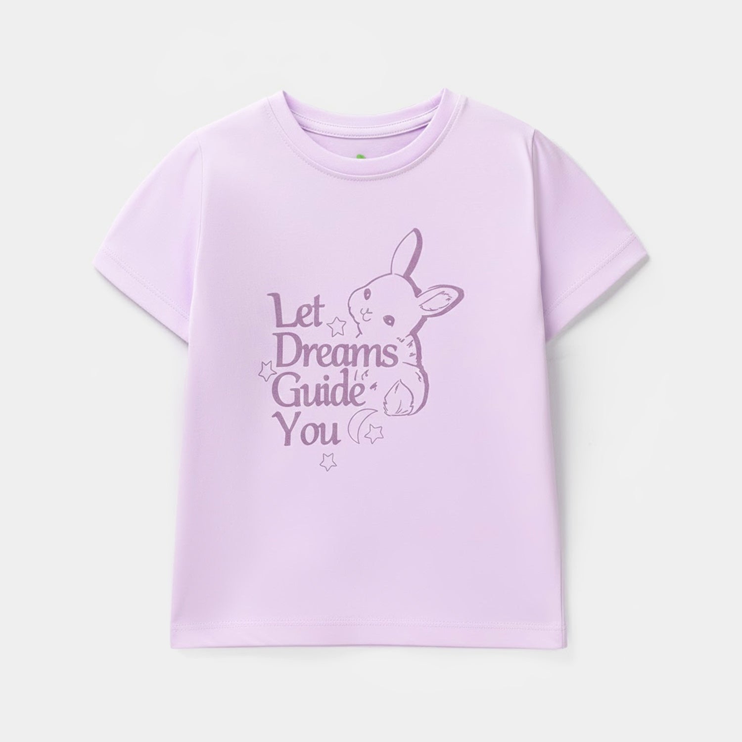 Infant girls jersey night-suit featuring a front-printed “Let Dream Guide You” design, half-sleeve round-neck shirt, and matching trousers for comfortable sleepwear.