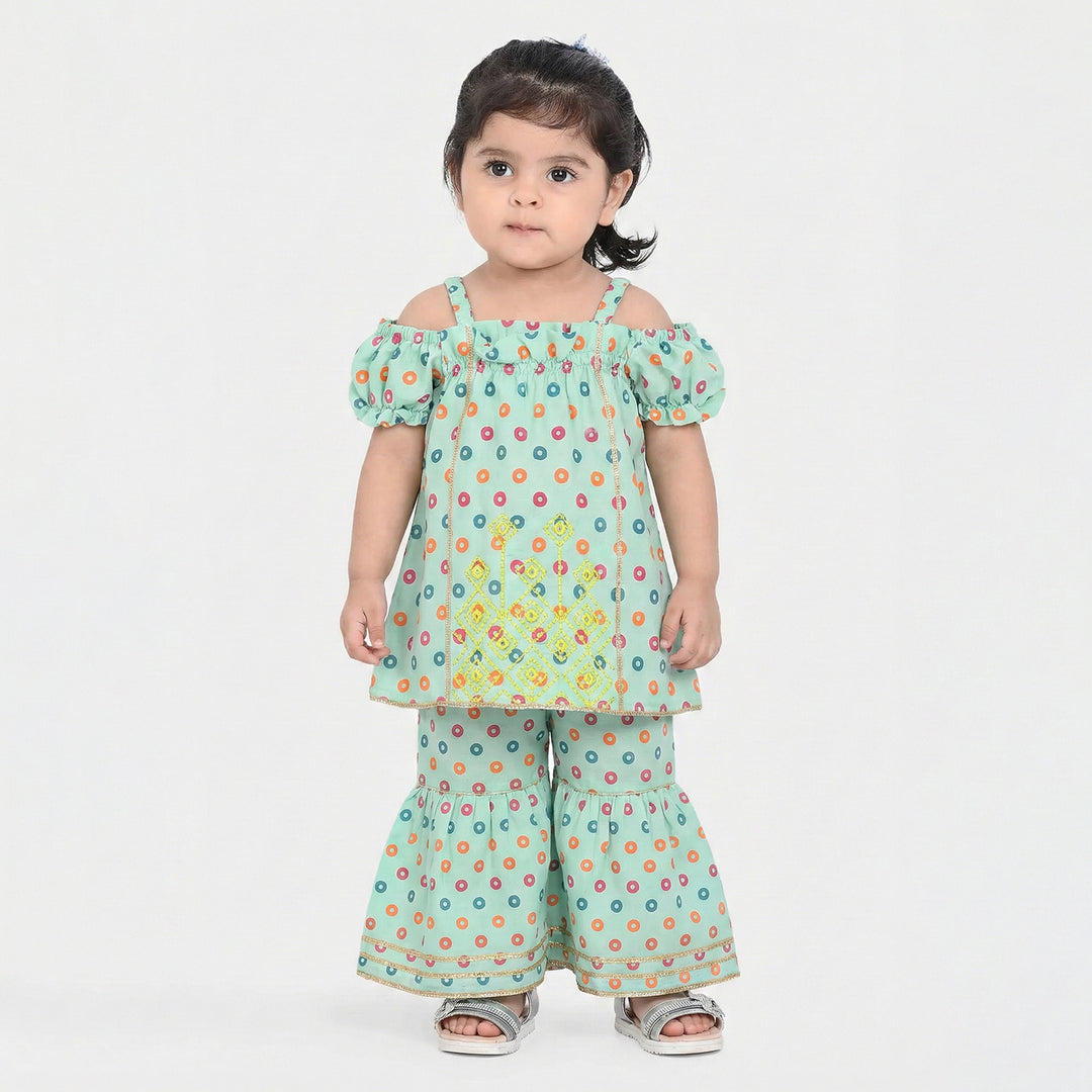 Infant Girls Poly Net Printed 2Pcs RikShaw-Multi