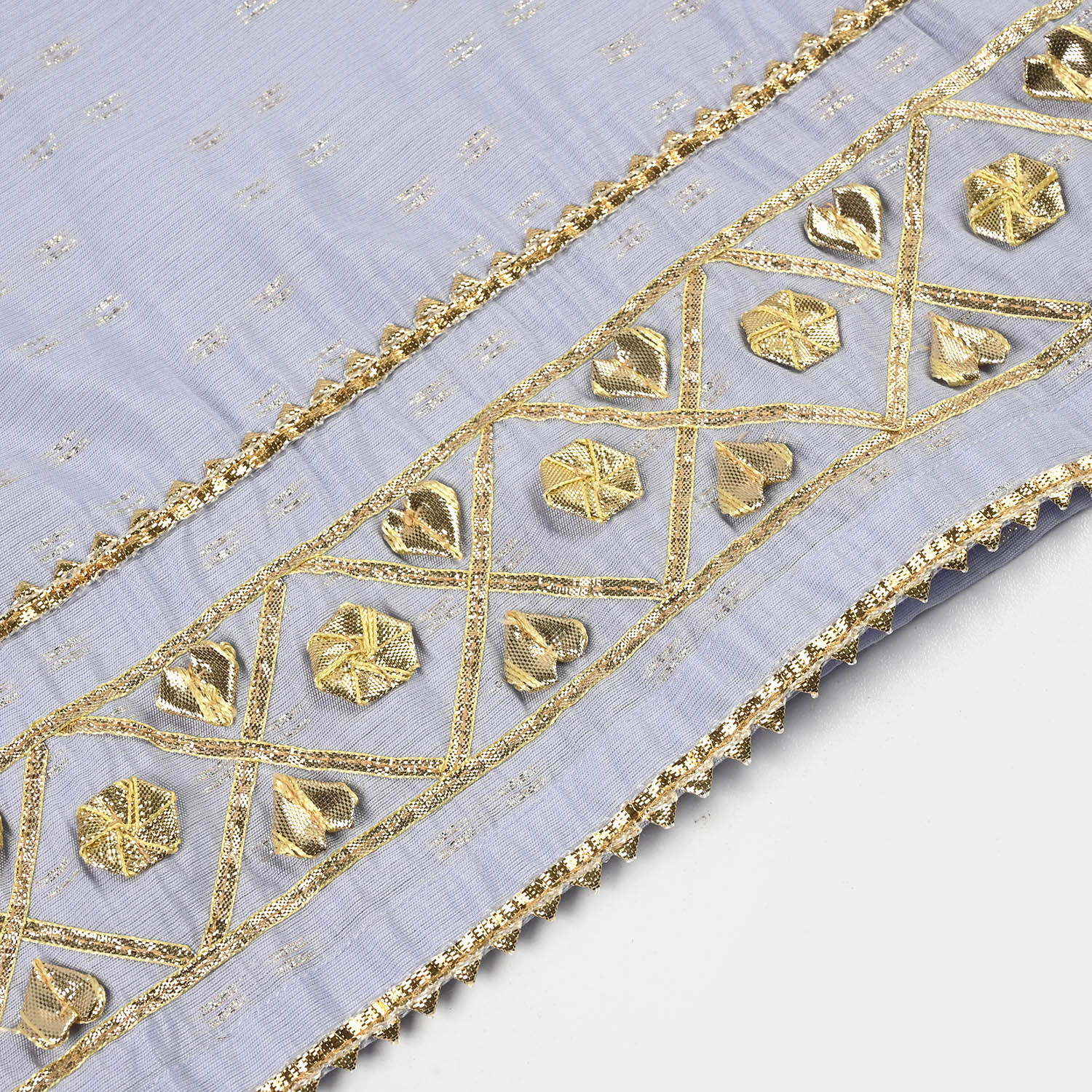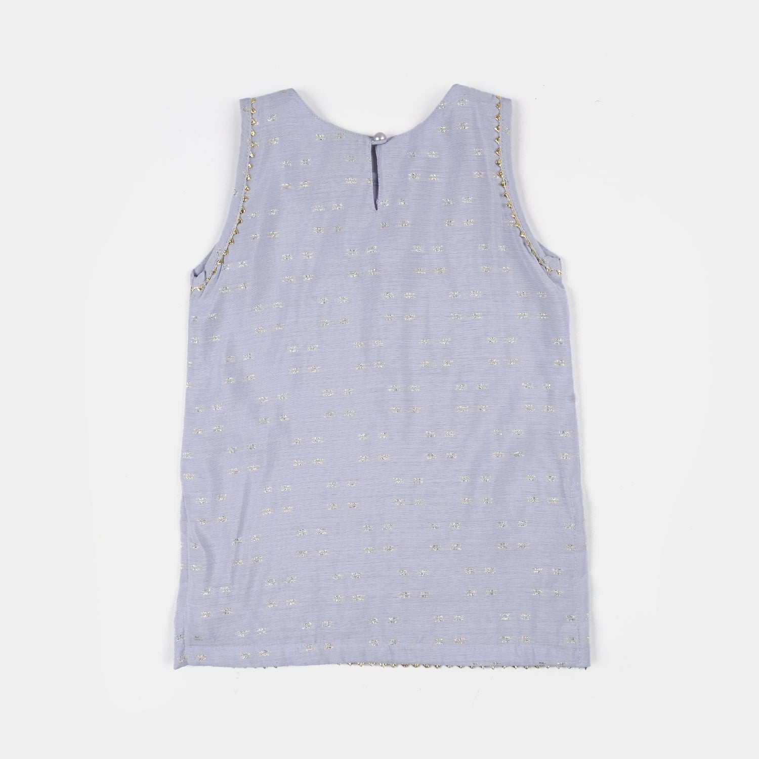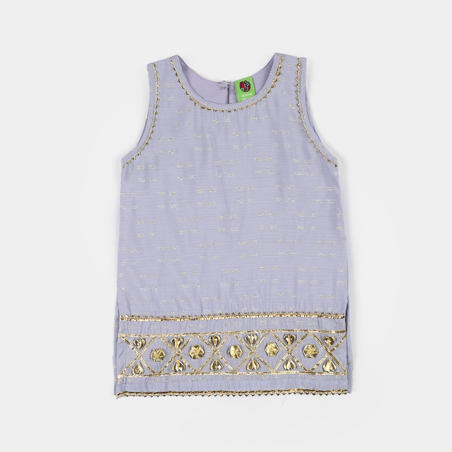 Infant girls’ jacquard 2-piece set in lilac featuring a round-neck sleeveless top and tulip pants with lace detailing, perfect for a stylish and comfortable everyday look.