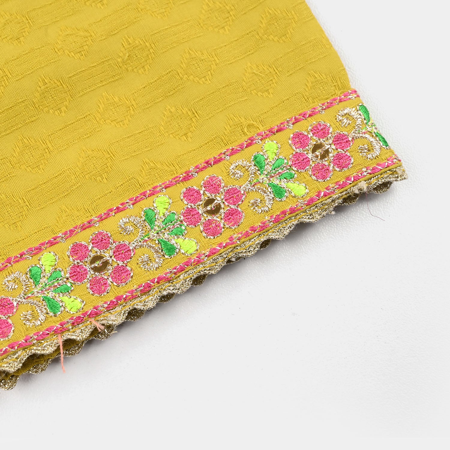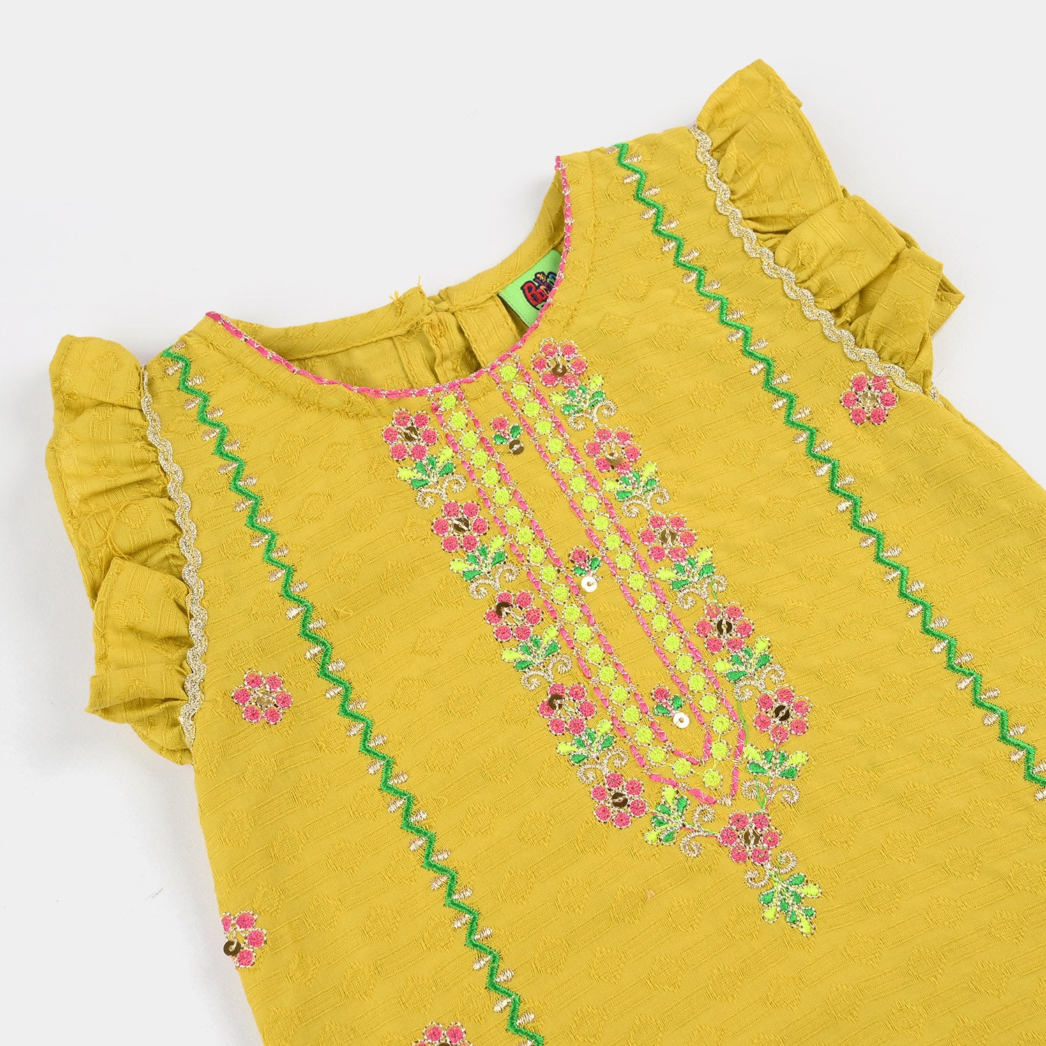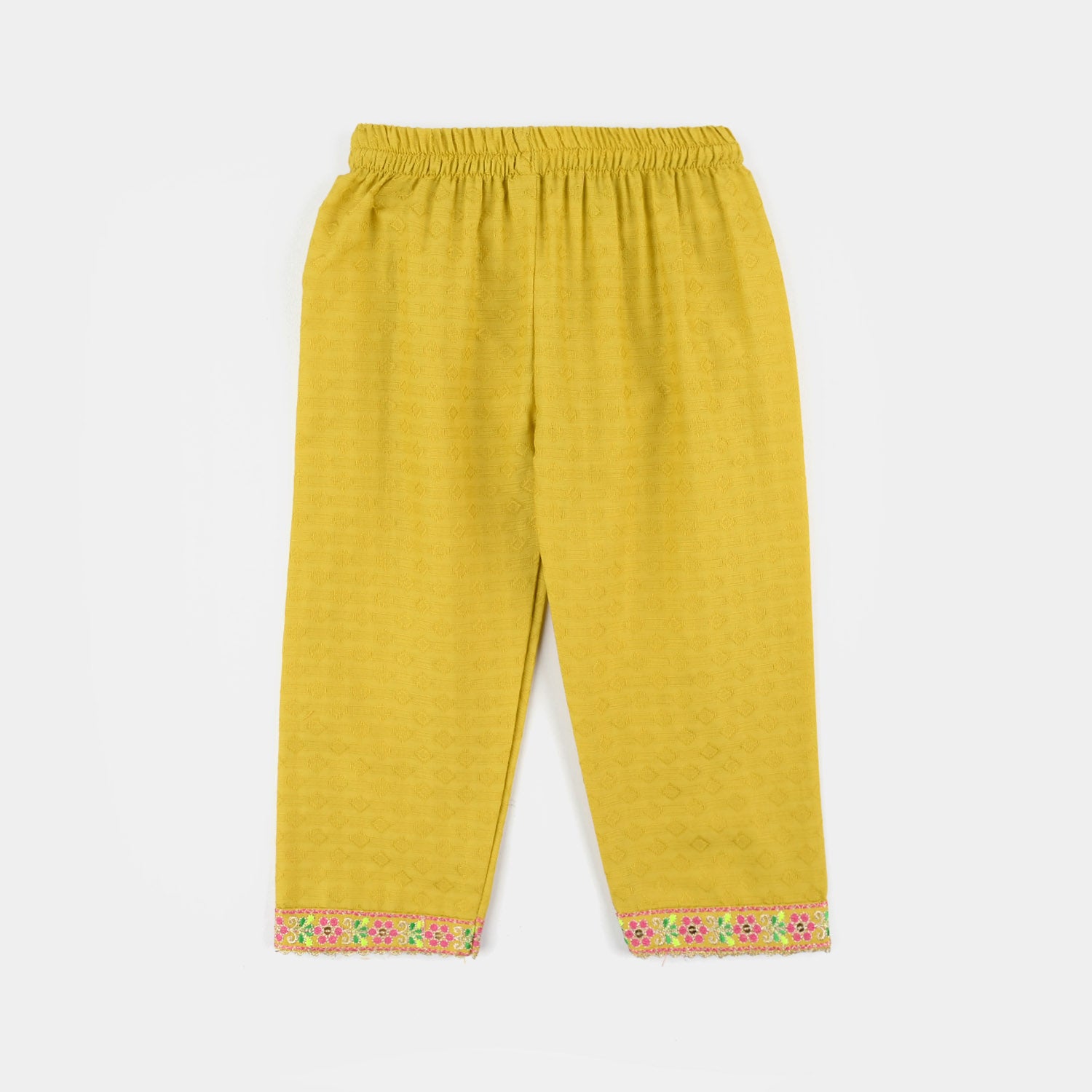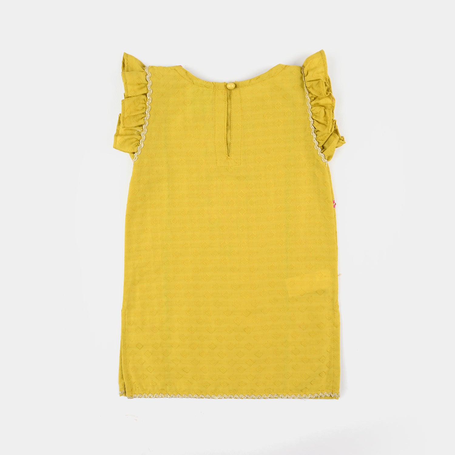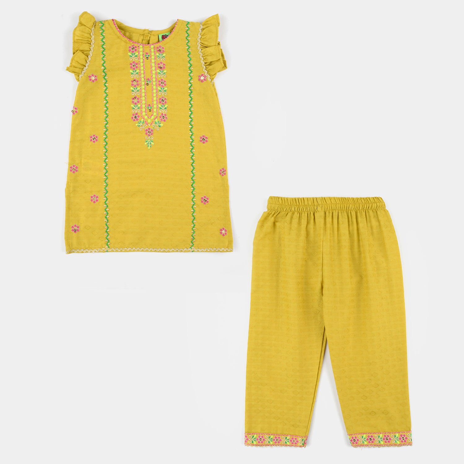 Infant girls' olive jacquard embroidered 2-piece set featuring a round neck, sleeveless shirt with matching bottoms, perfect for a stylish and comfortable everyday look.