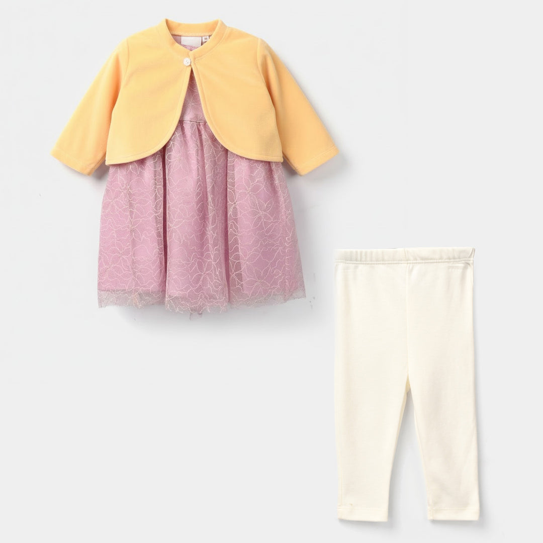 Infant Girls Cotton Interlock Frock Fancy-Grey/Pink