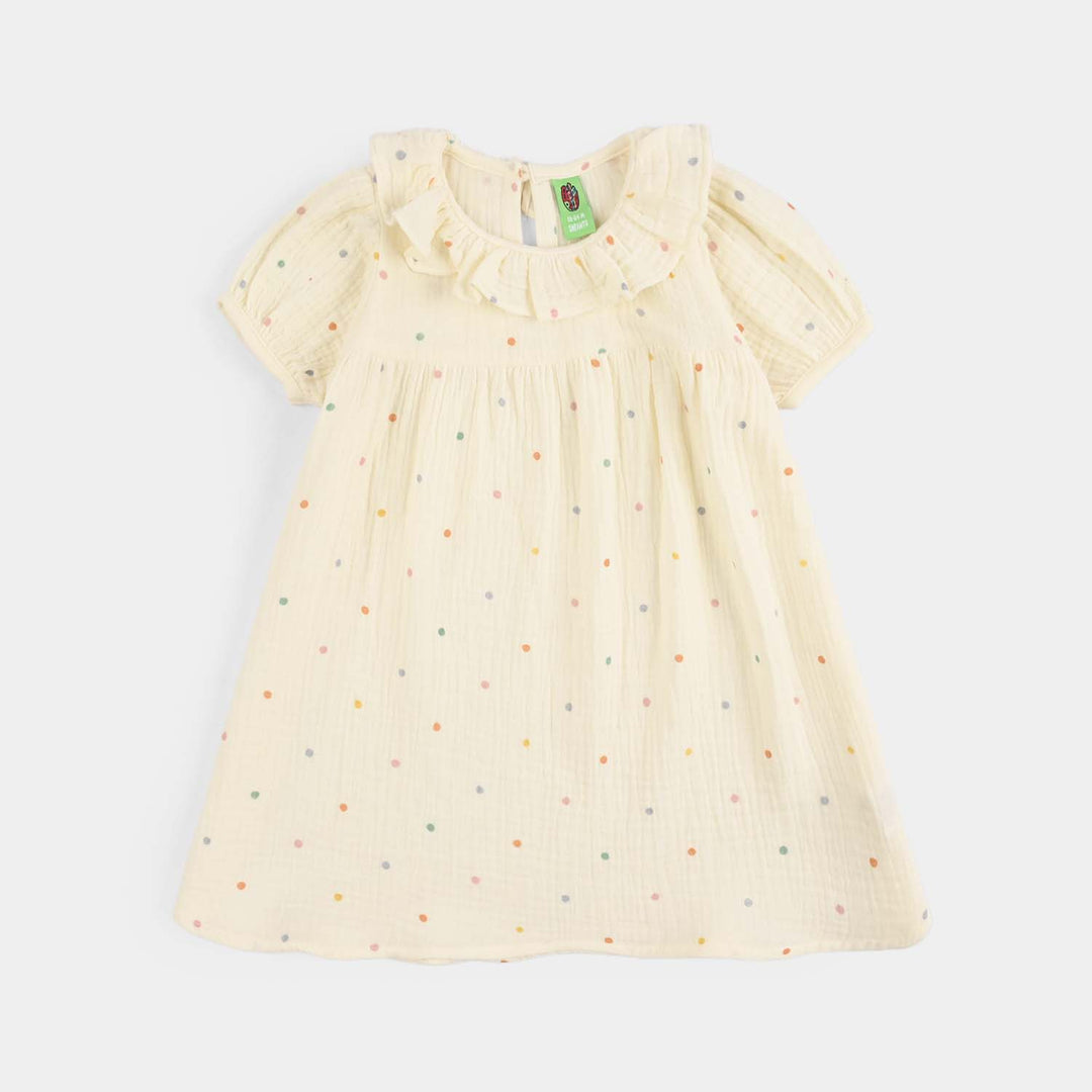 Infant Girls Cotton Poplin Casual Frock Polka Dots-Pink