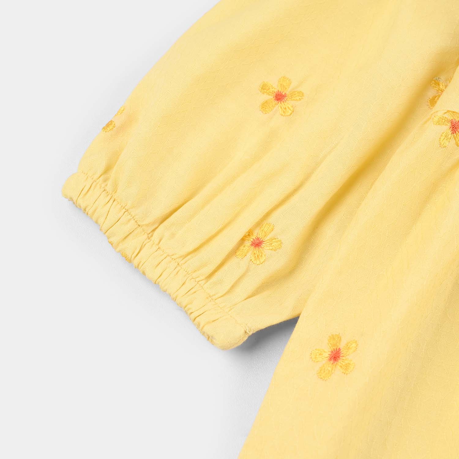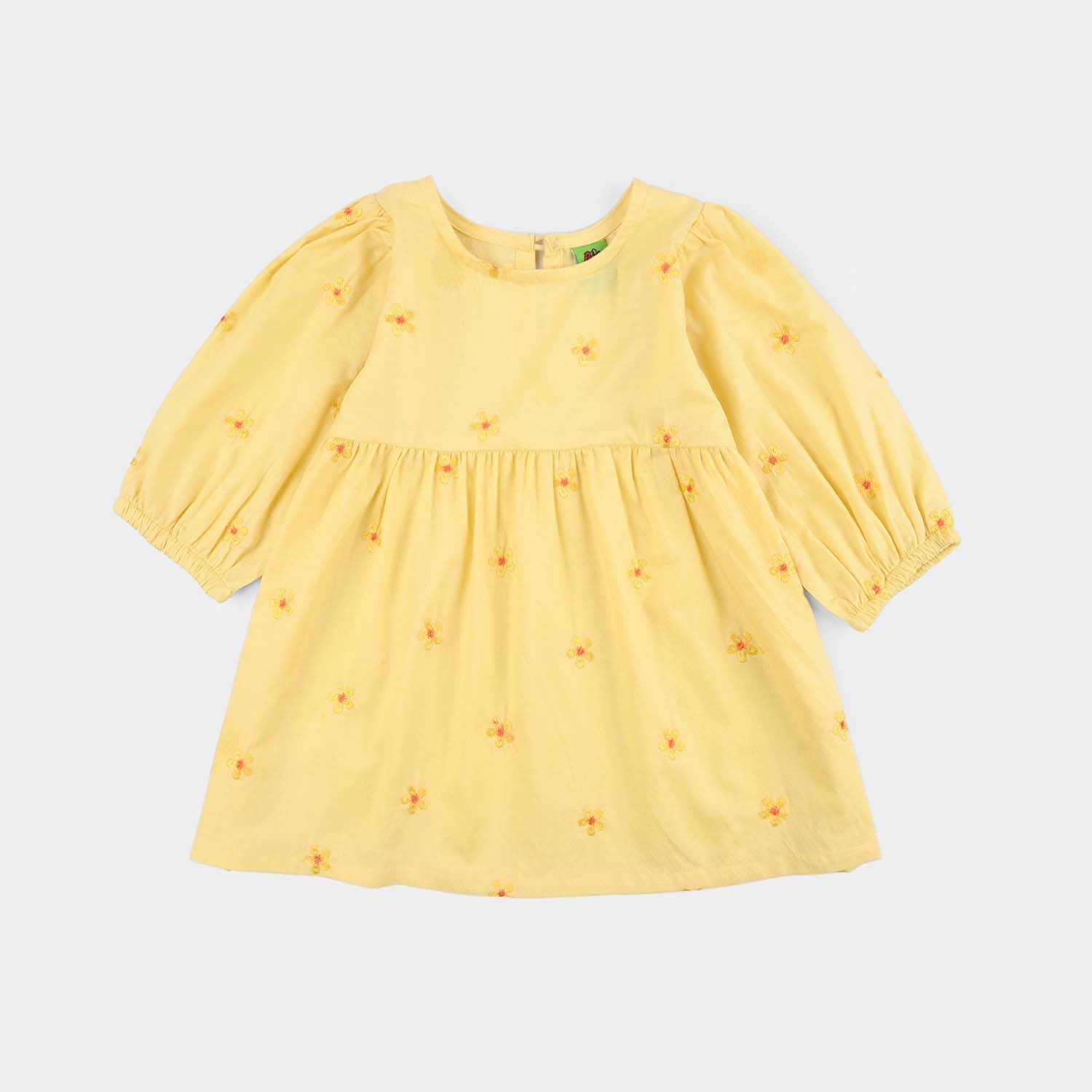 Bachaa Party brings you the best price Infant Girls Jacquard Emb Frock Flowers-Yellow with express shipping all over Pakistan.