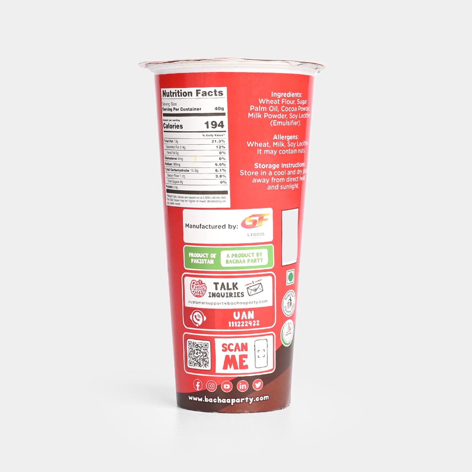 Ingredients: Wheat Four, Sugar, Palm Oil, Cocoa Powder, Milk Powder, Soy Lecithin (Emulsifier)