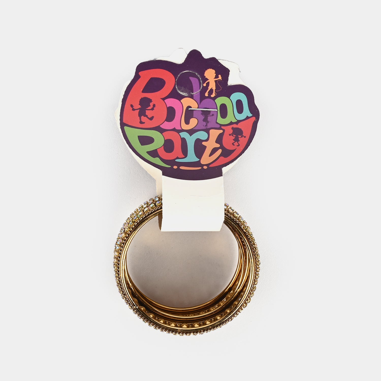 Golden bangles with multi colored embellishment, designed to add a festive touch to any outfit. Lightweight, comfortable, and perfect for parties, weddings, or everyday wear for girls aged 5–7 years.