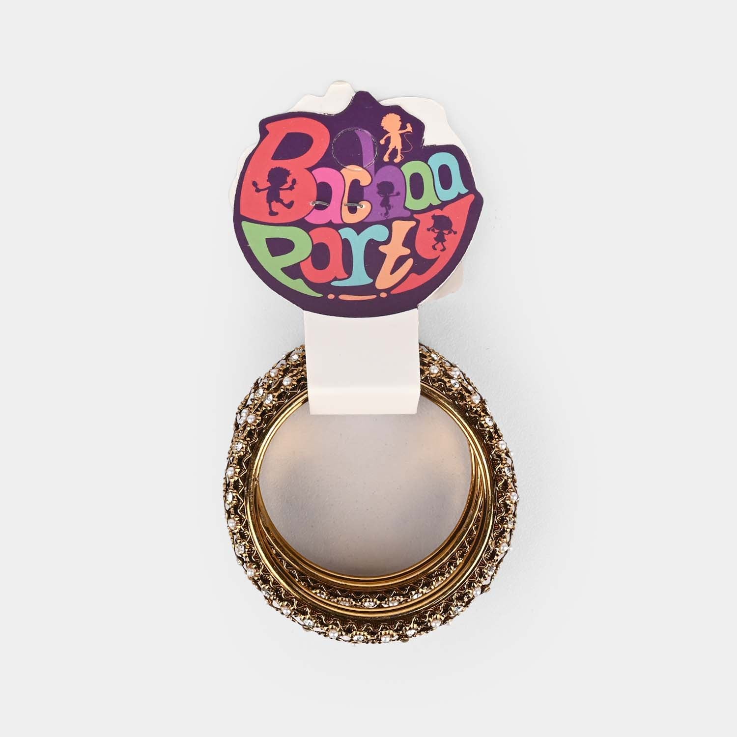 Golden bangles with embellishment finish, designed to add a festive touch to any outfit. Lightweight, comfortable, and perfect for parties, weddings, or everyday wear for girls aged 8–12 years.