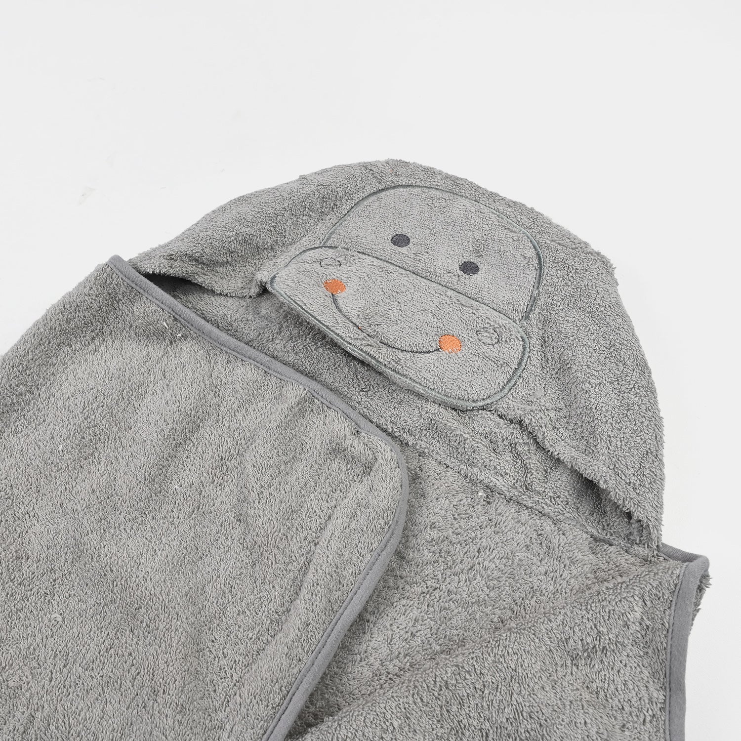 Soft cotton hooded towel designed for babies. Features excellent absorbency to quickly dry moisture while the hood provides extra warmth and coverage. Lightweight and breathable fabric is gentle on delicate skin, making it ideal for daily bath time use.