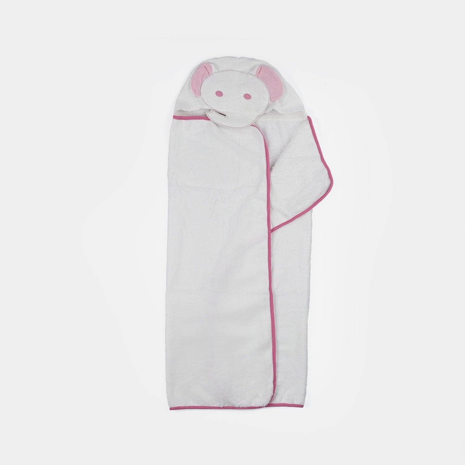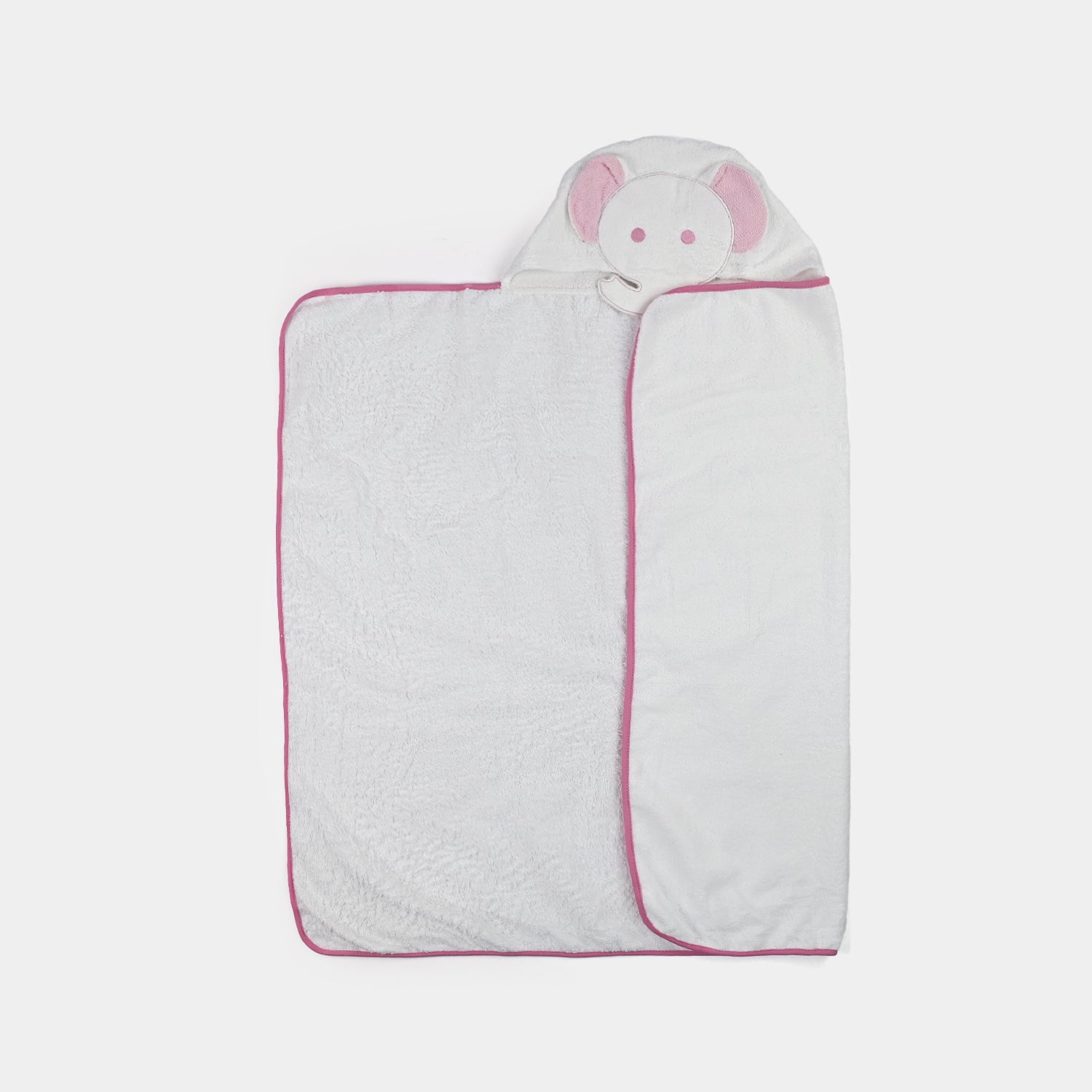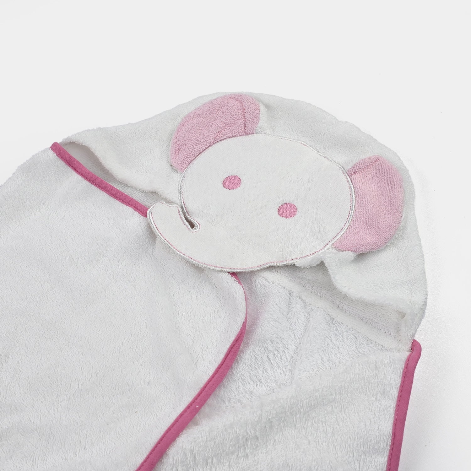 Soft cotton hooded towel designed for babies. Features excellent absorbency to quickly dry moisture while the hood provides extra warmth and coverage. Lightweight and breathable fabric is gentle on delicate skin, making it ideal for daily bath time use.