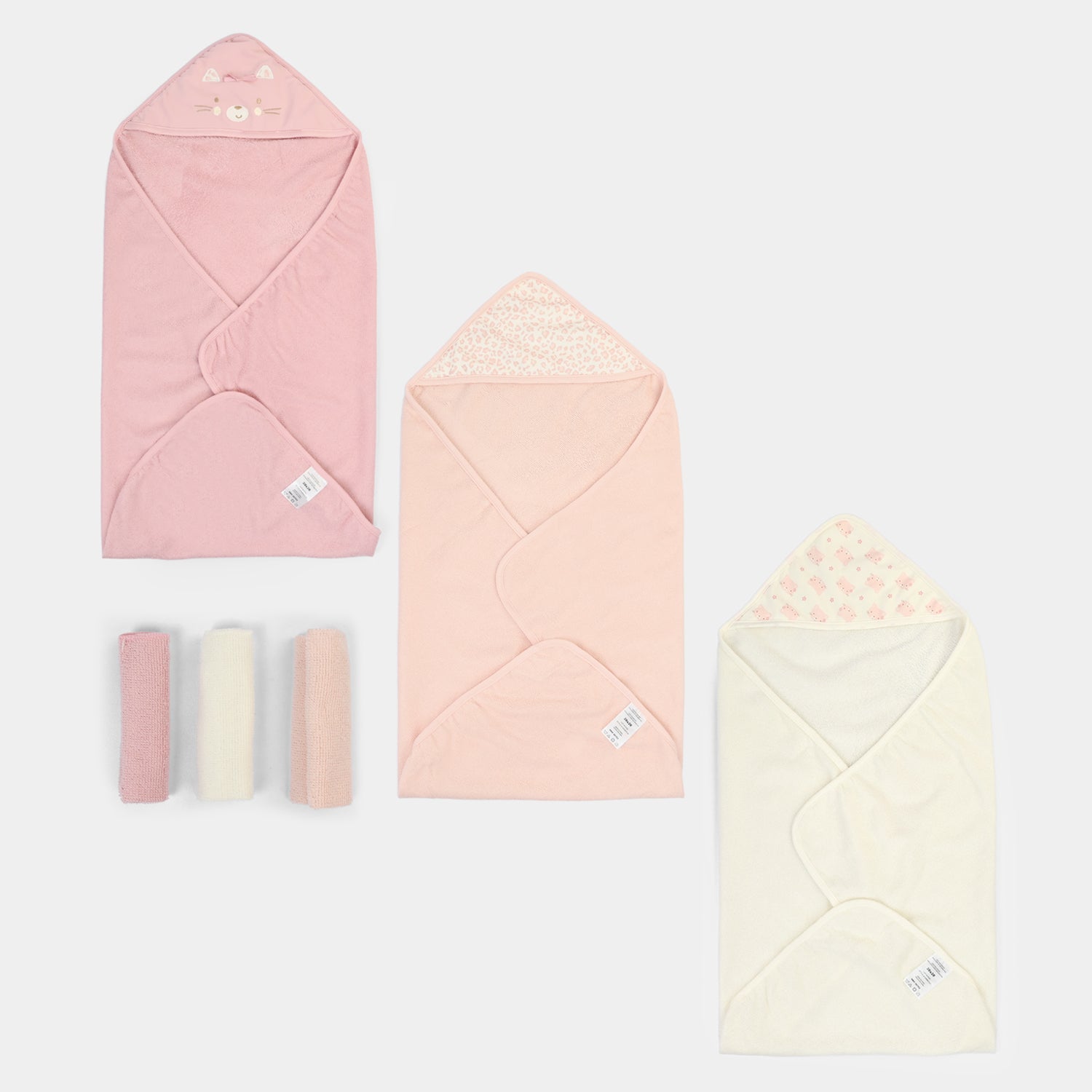 Let your baby soak in the cozy vibes with these ultra-soft bath towels. The gentle terry material keeps the little one warm and dry after every bath while the hood keeps the head snugged.